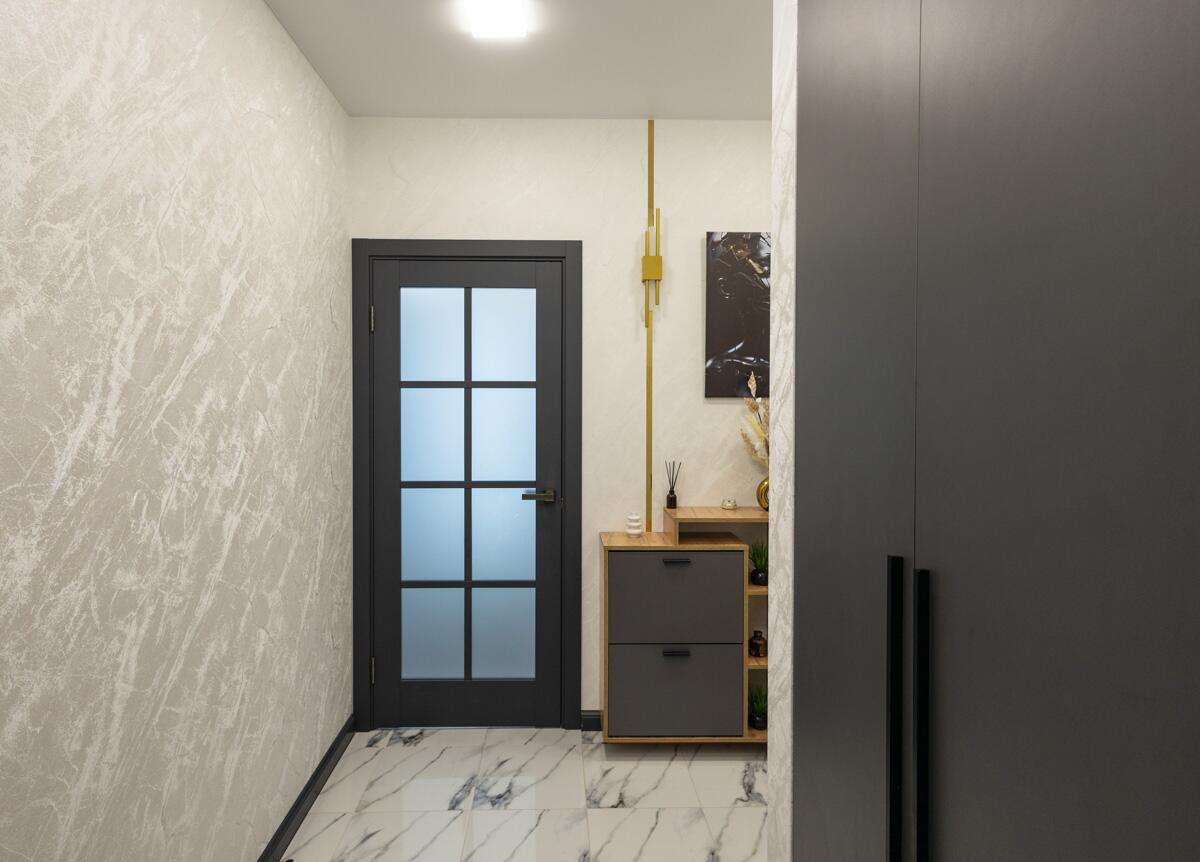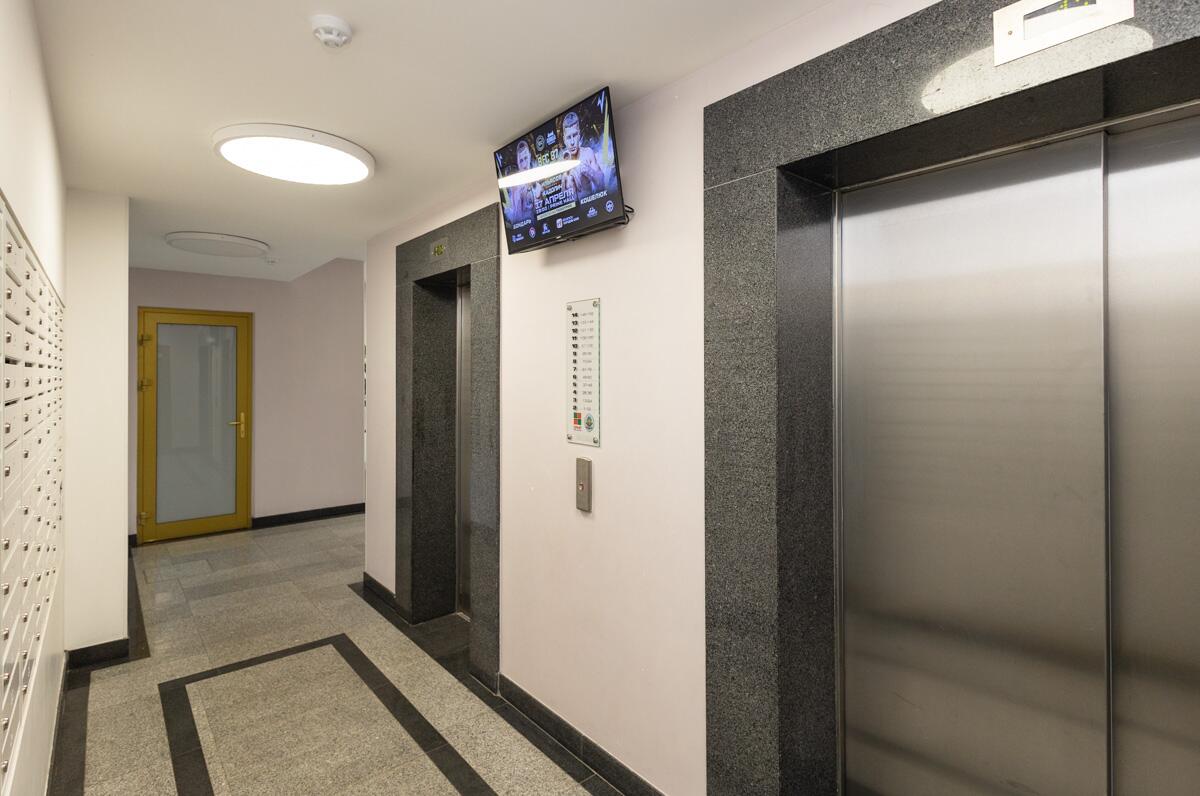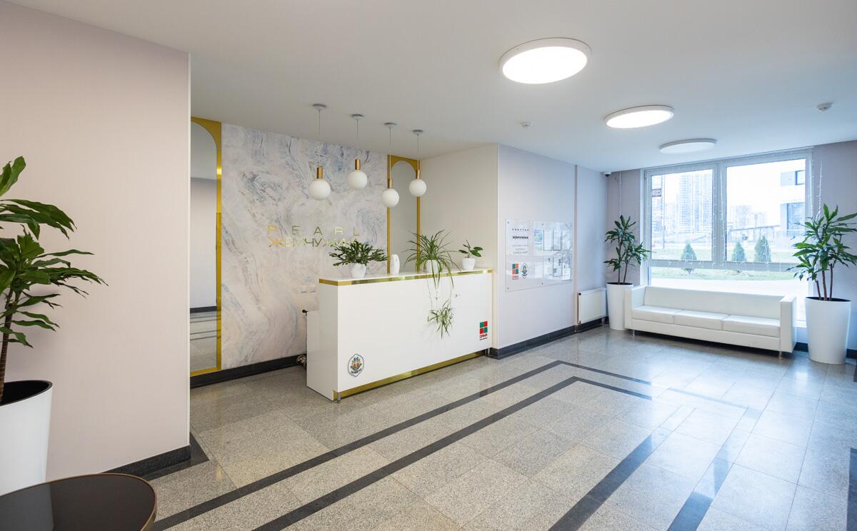 Стильный, современный, проходной подъезд - лобби с зоной ожидания и туалетом.