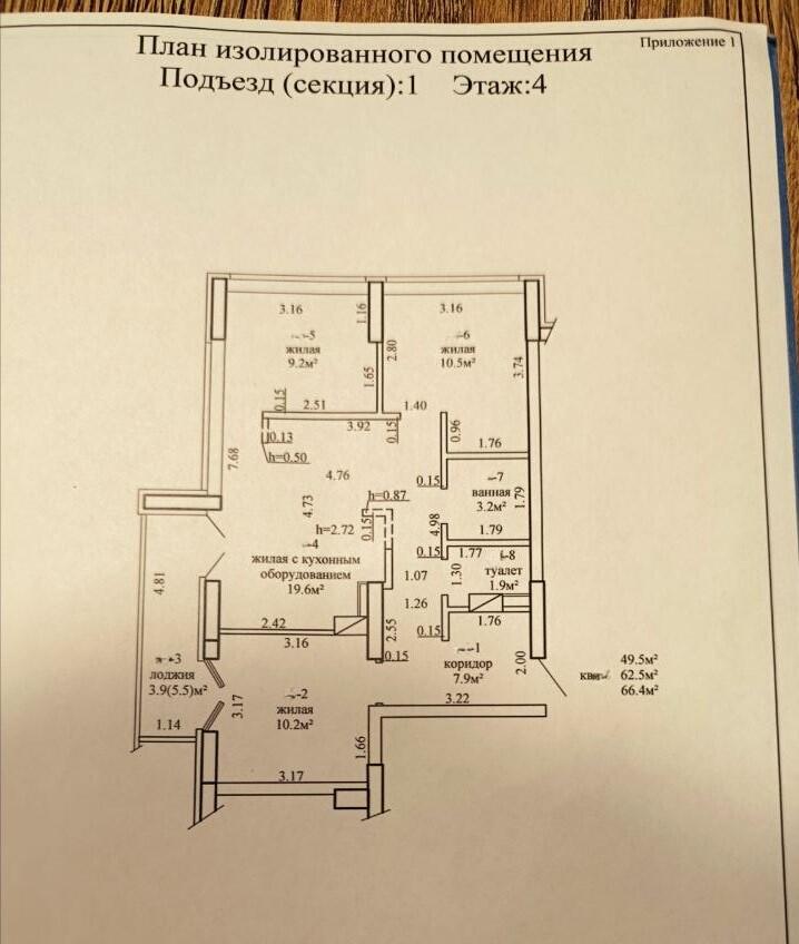 Площадь квартиры по СНБ 66,4 м2. (h-2.7м).