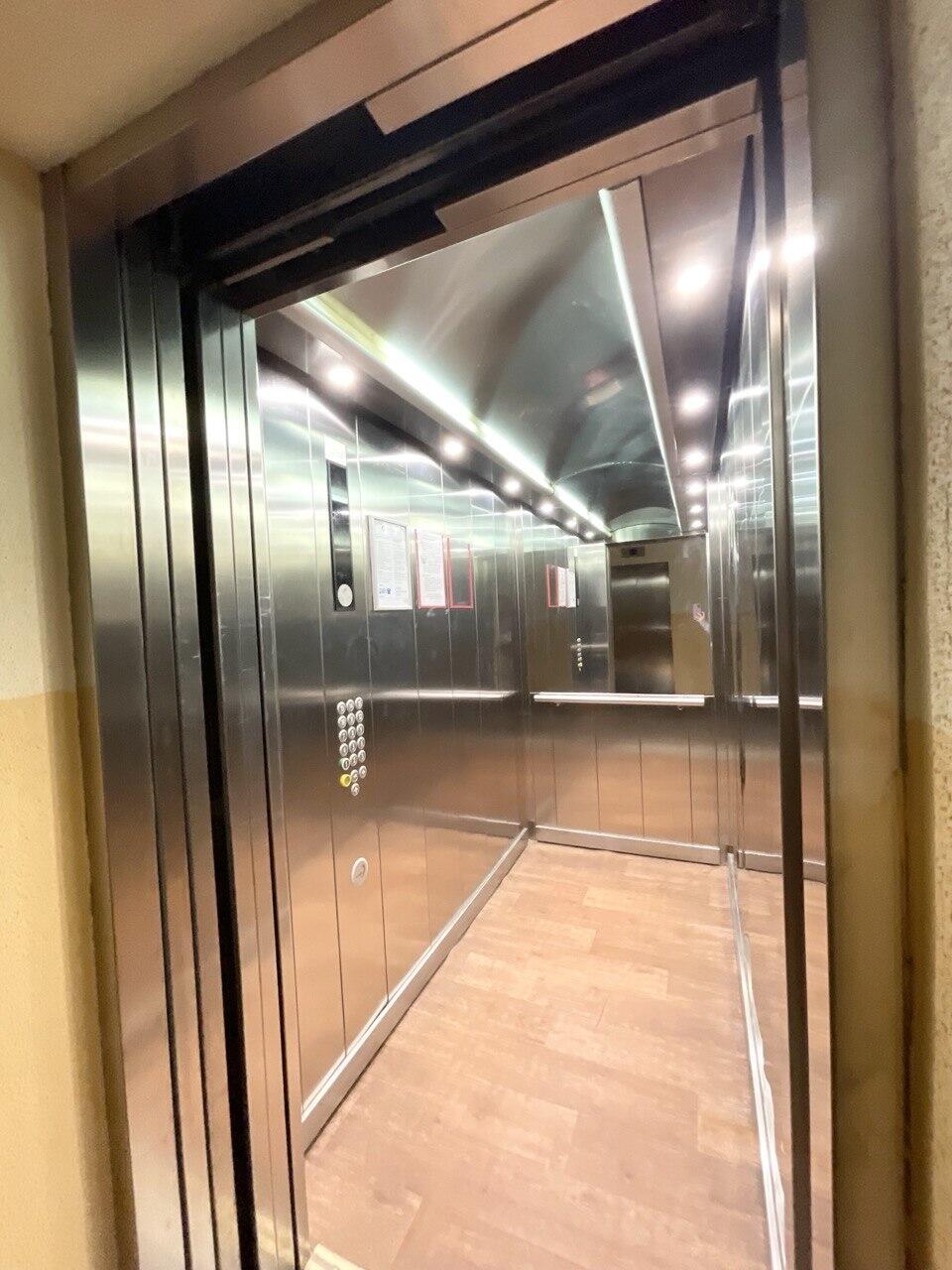 Чистый и ухоженный подъезд без эксплуатируемого мусоропровода. Мусорные контейнеры вынесены отдельно вне двора дома.