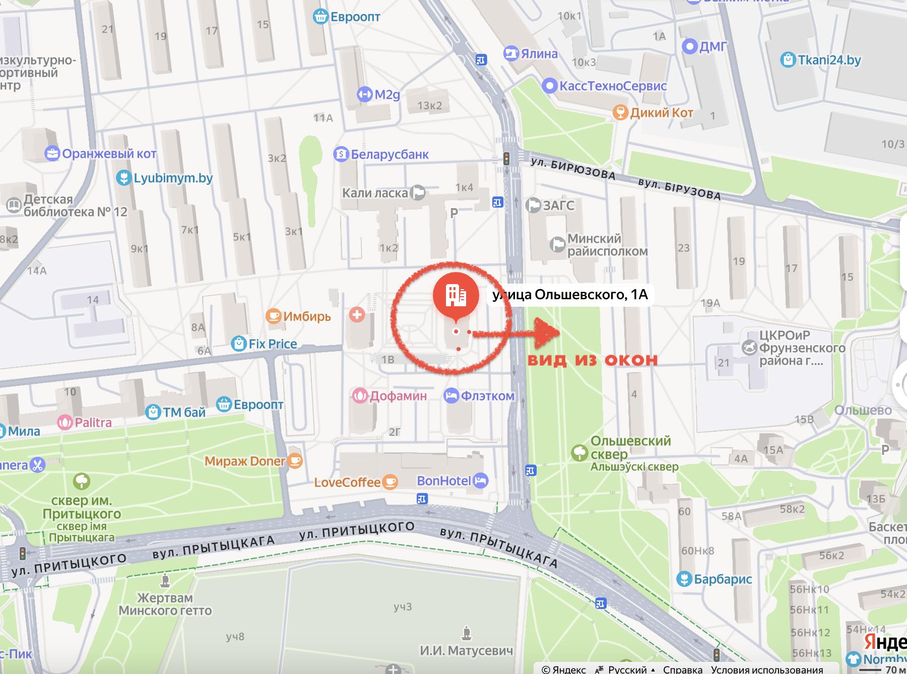 Локация — топ: 5 минут до метро, рядом ТЦ «Корона», лучшие кофейни и бизнес-центры. Вид, который вдохновляет: Прямой вид из окон на Ольшевский парк с обзором вечернего Минска! Ваш дизайн — ваши правила: Свободная планировка и отсутствие чужого устаревшего ремонта позволит с легкостью и без дополнительных затрат воплотить любую вашу мечту. Безопасность: Респектабельный, тихий, экологически чистый район в центре города. Характеристики: