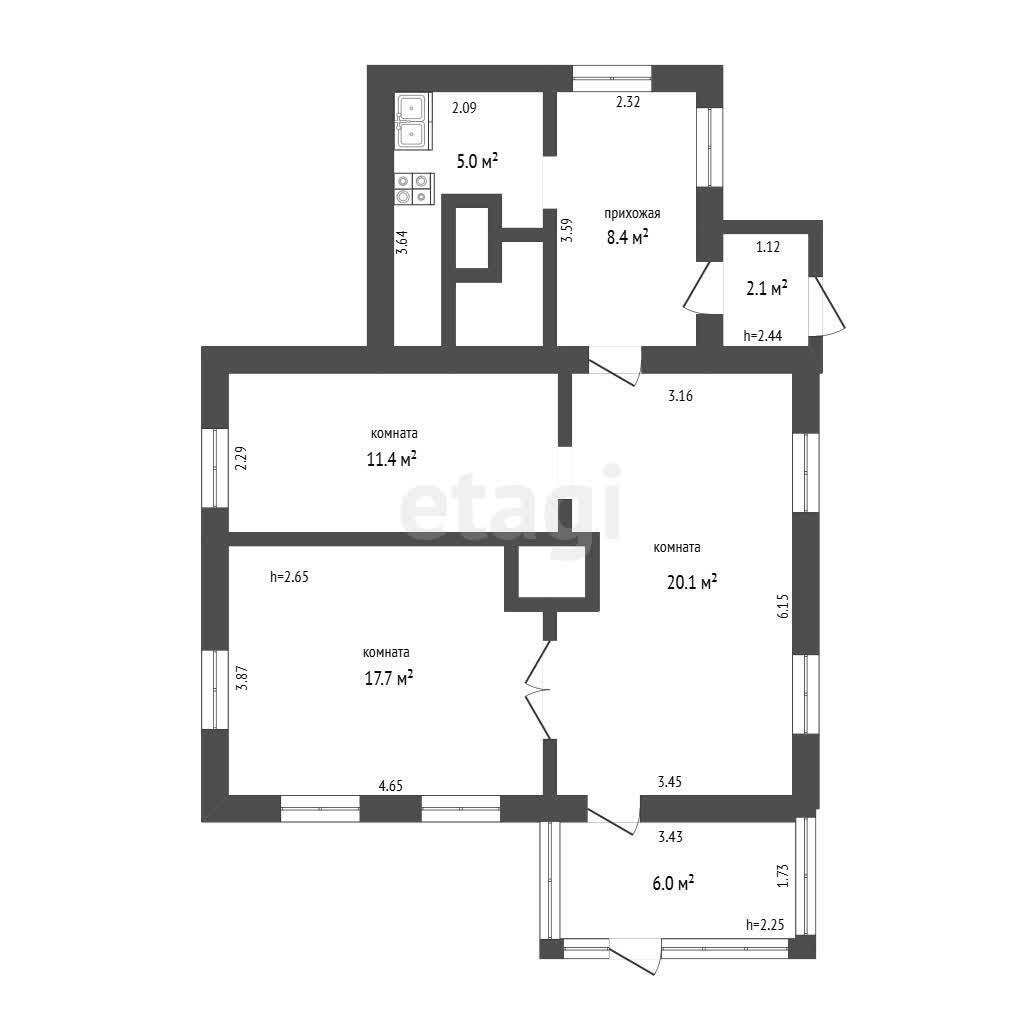 Общая площадь: 62,2 м2, жилая 49,2 м2, 1965 г.п.