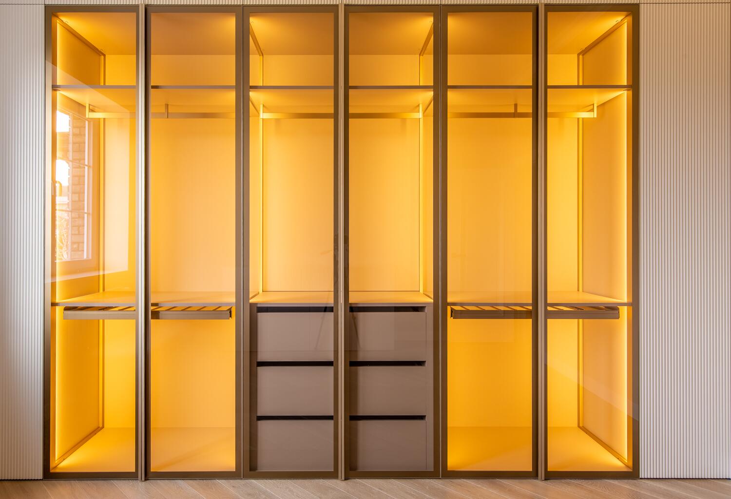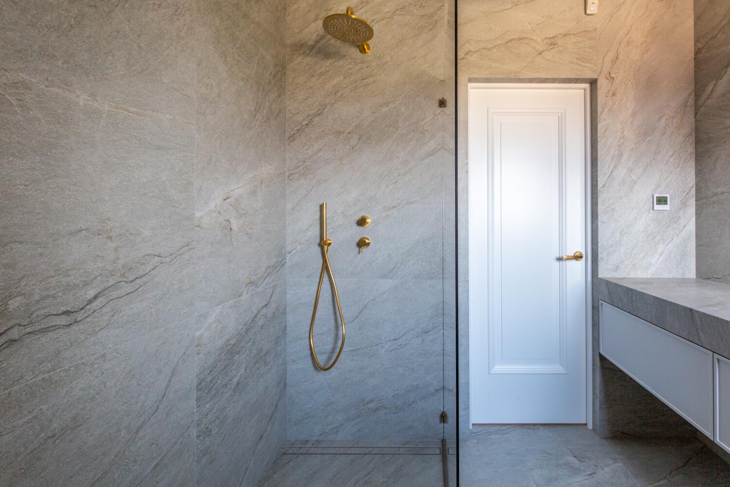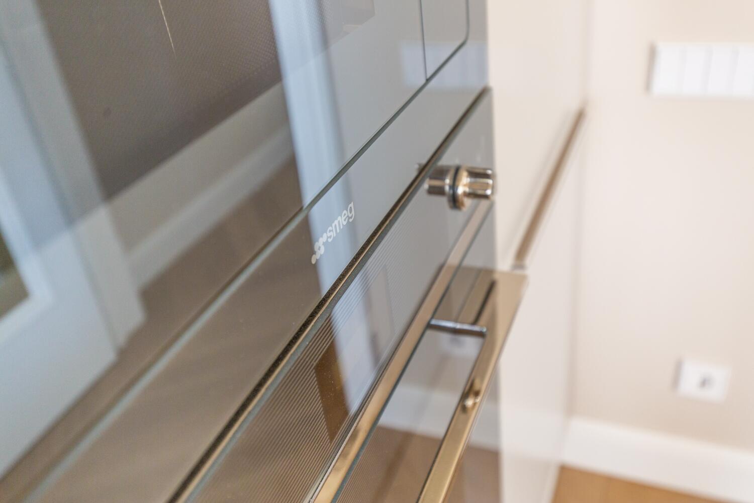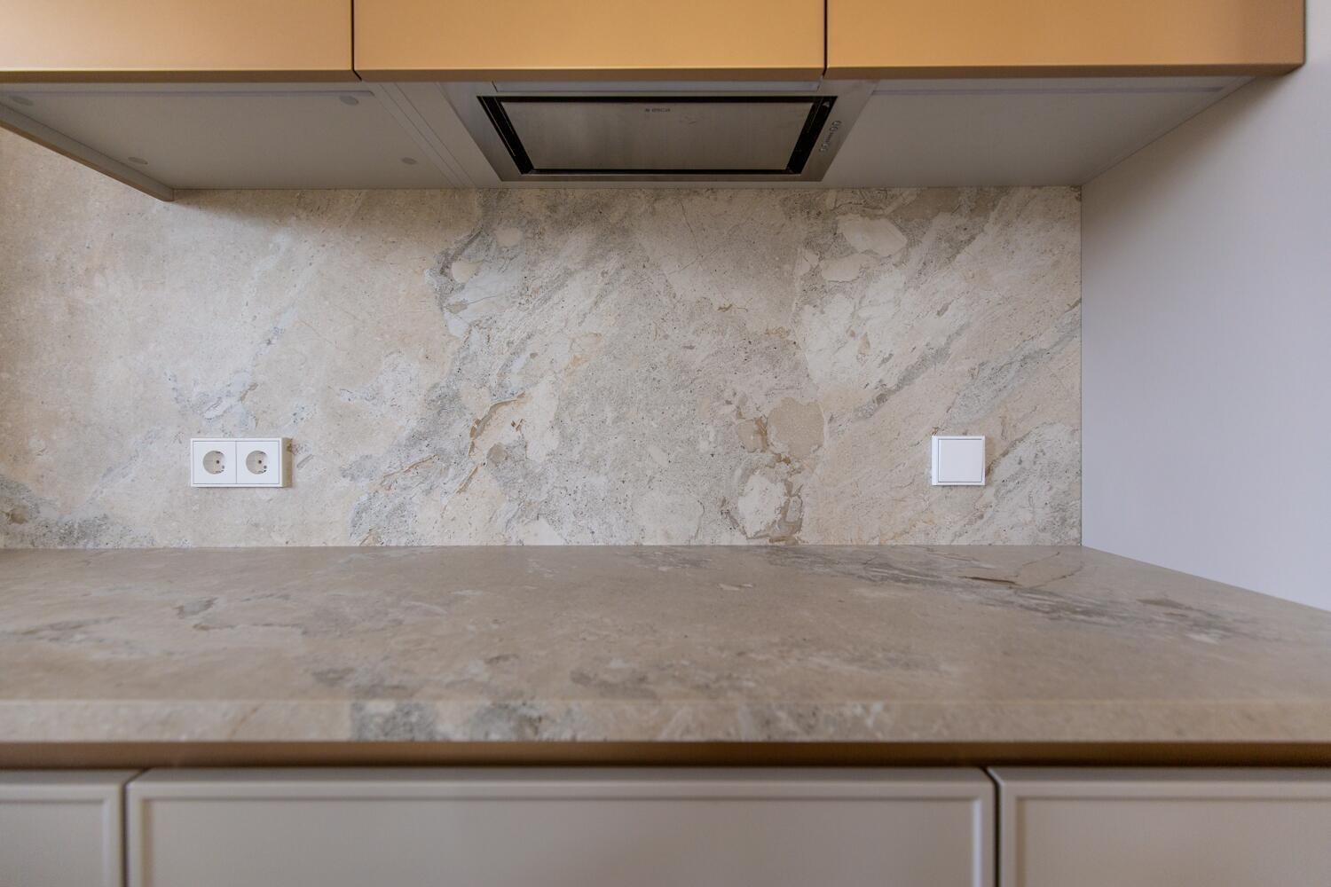 Внутри — пространство, в котором уже хочется жить. Кухня-гостиная с потолками почти 4 метра, камин, выход на террасу. Техника Smeg, Liebherr, Siemens, столешница из камня, обеденный стол из массива. Мастер-спальня с гардеробной и санузлом изолирована от остальных зон — своя тихая территория на первом этаже.