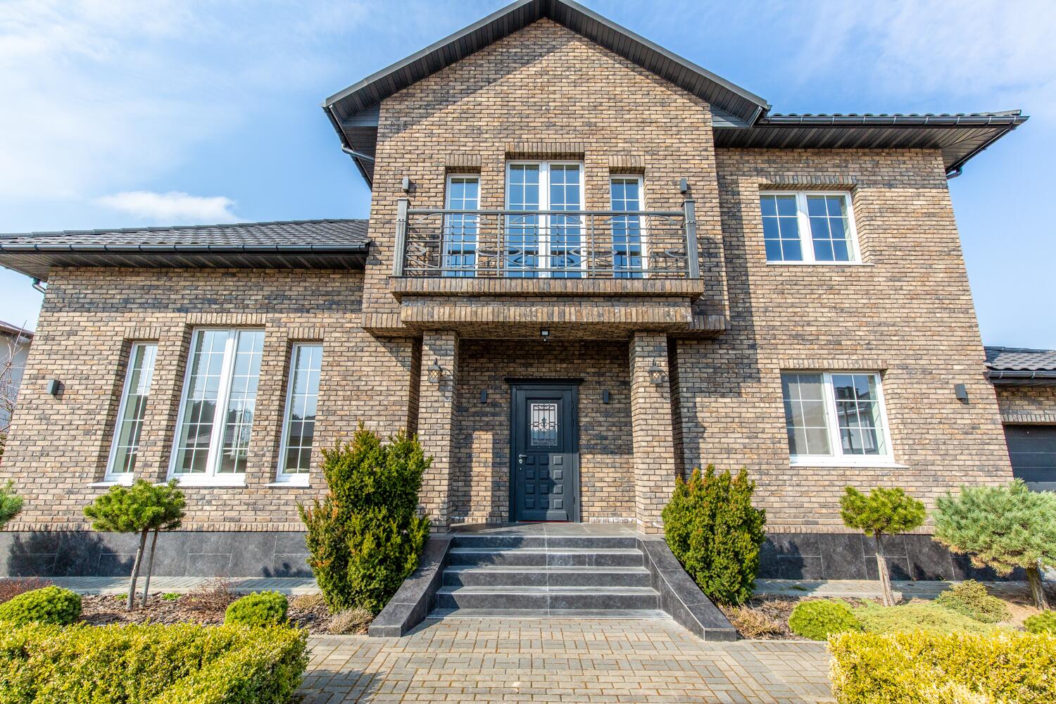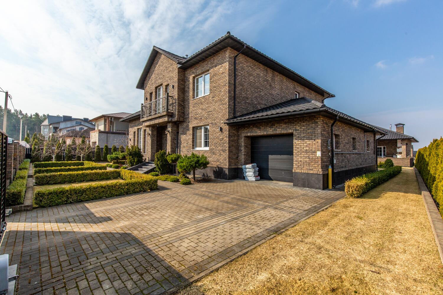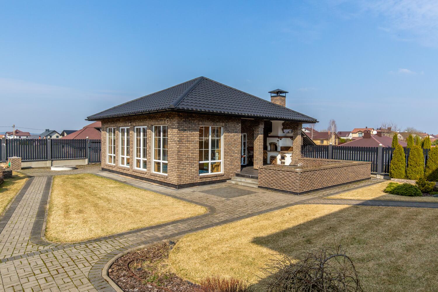 Дом строился для себя — и это считывается сразу. Фасад из кирпича ручной формовки, кровля Metrobond, монолитный фундамент, стены с утеплением из каменной ваты. Всё сделано на десятилетия вперёд.