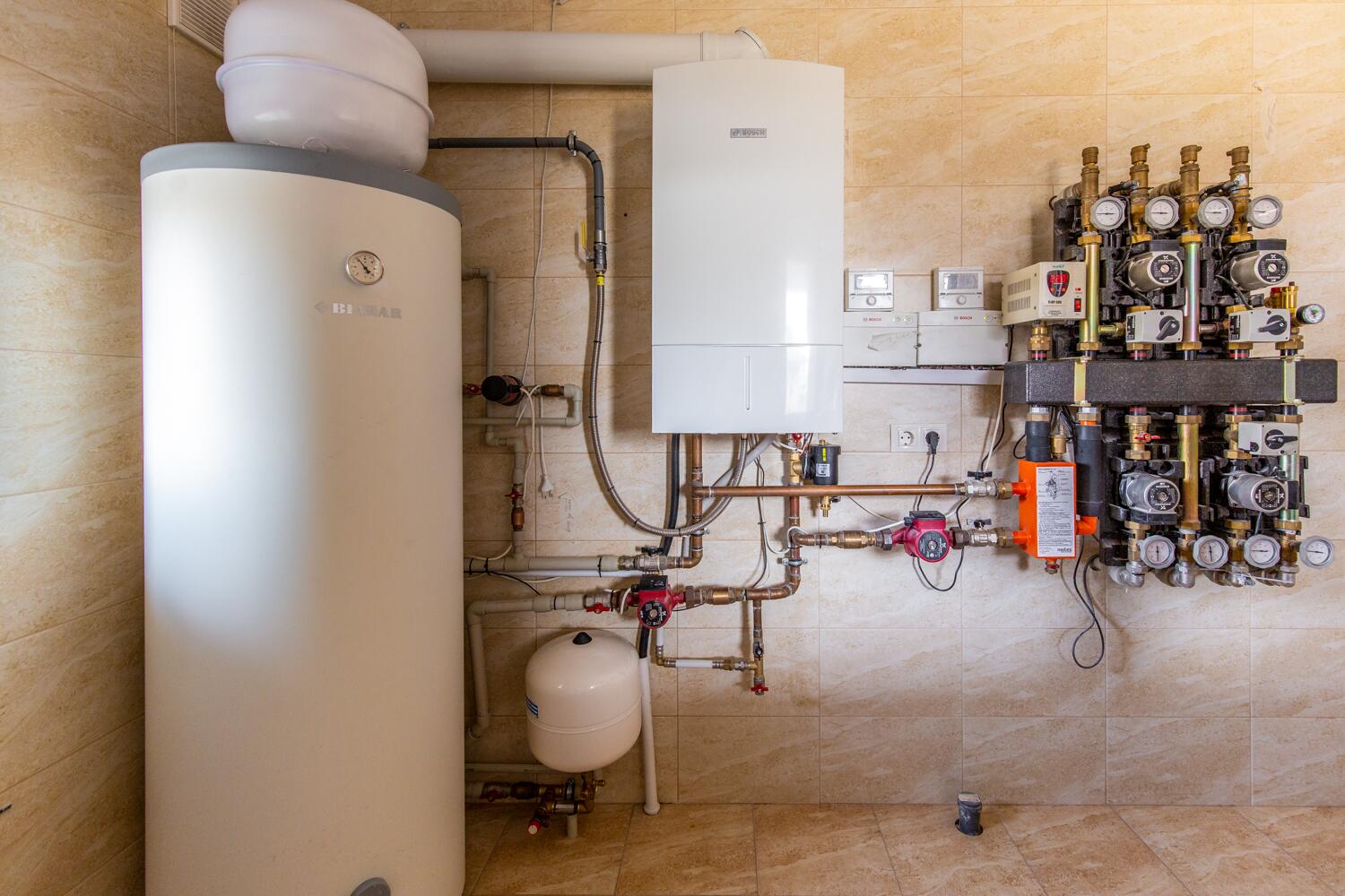 Инженерия под стать архитектуре: газовое отопление с метеозависимой системой, тёплые полы по зонам, скважина, септик, встроенный пылесос.