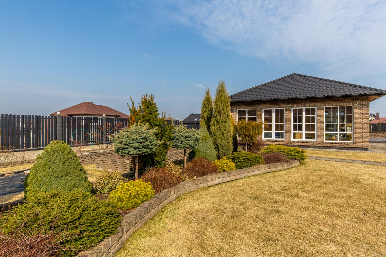 Участок ухожен: туи, газон, автополив, освещение, въезды с двух сторон, откатные ворота.
