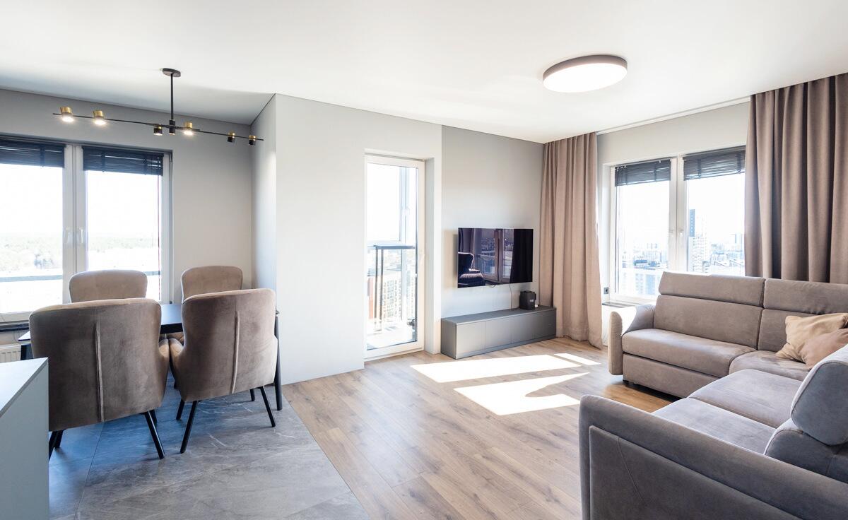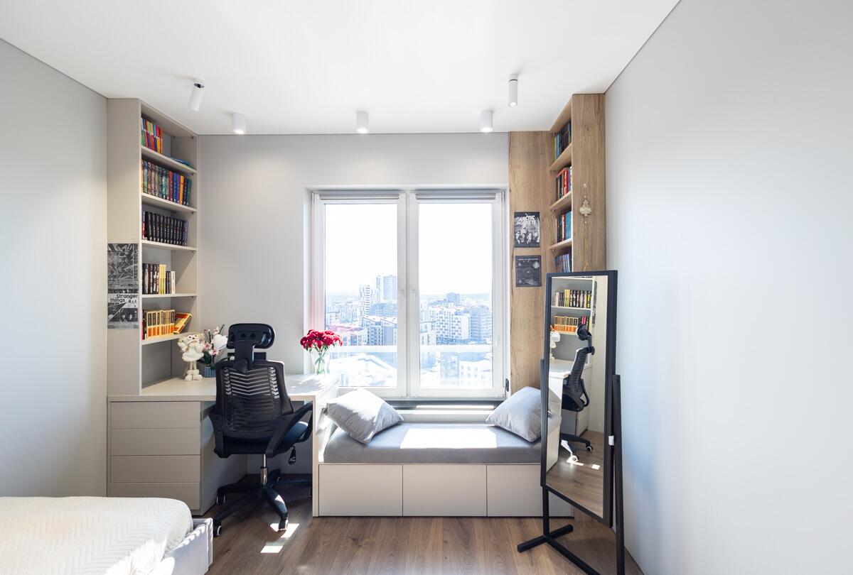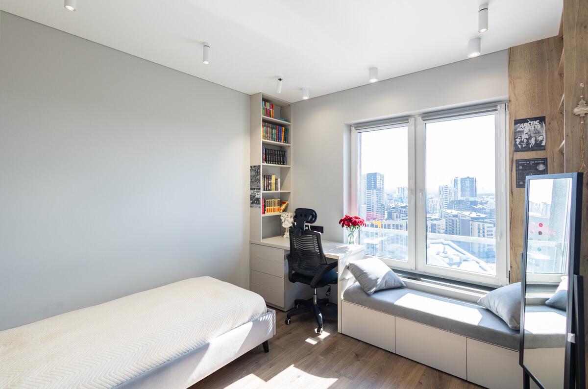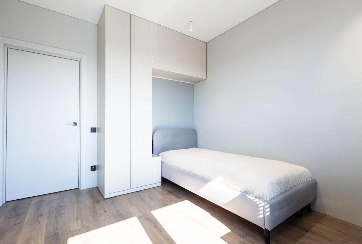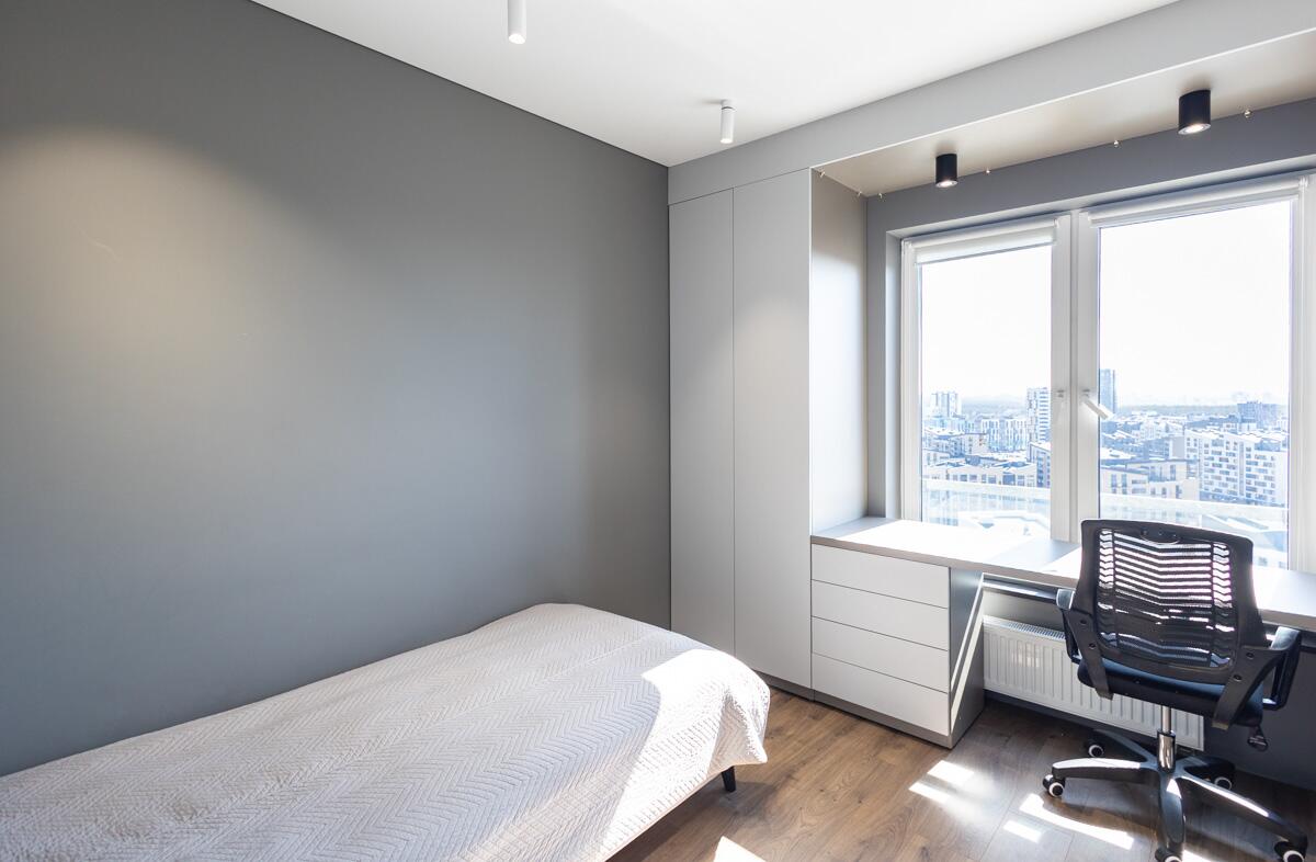 Три изолированные комнаты (10,8 м2, 10 м2 и 9,3 м2) обеспечивают приватность каждому члену семьи, а просторная кухня-гостиная 26,1 м2 становится центром притяжения — для отдыха, общения и приёма гостей. Дополнительным преимуществом является отдельная гардеробная и большое количество встроенных систем хранения.