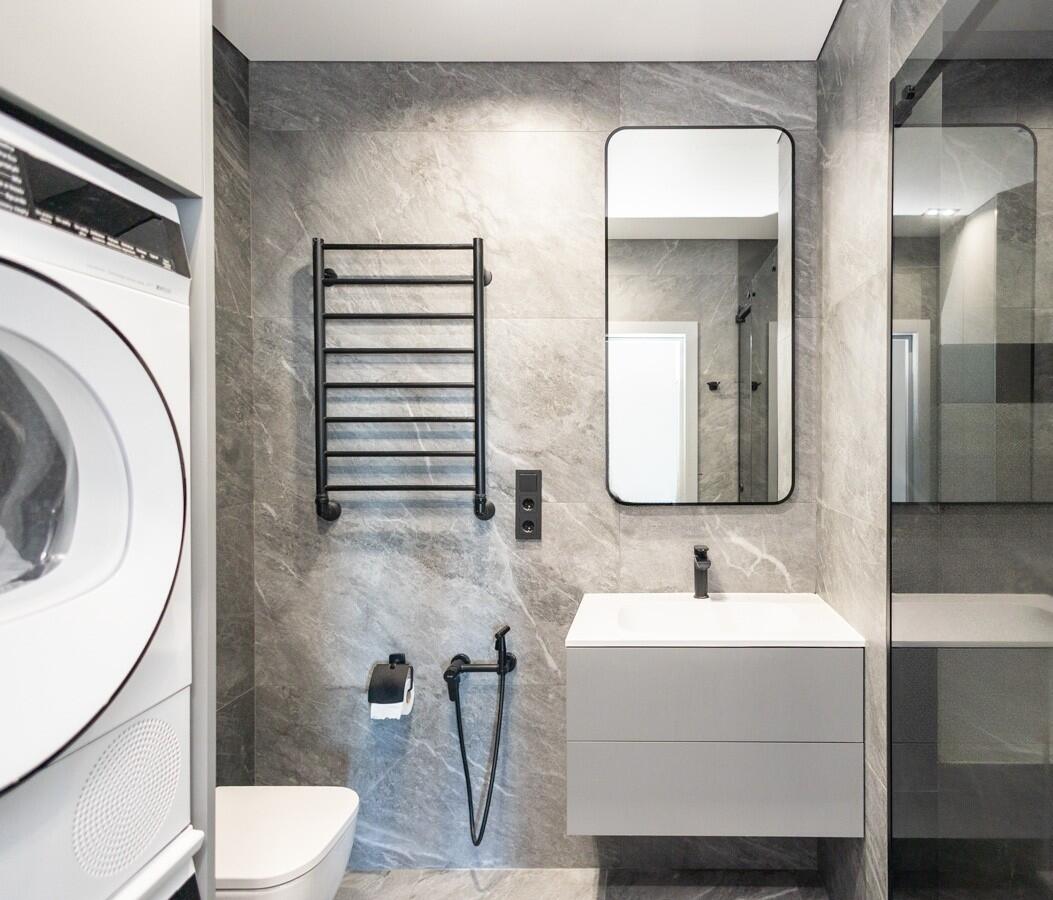 Квартира полностью укомплектована встроенной мебелью и техникой, выполненными по дизайн-проекту. Установлены: фильтр питьевой воды, электрическая варочная поверхность, измельчитель отходов, холодильник, посудомоечная машина, стиральная и сушильная машины, бойлер. Всё продумано до мелочей — для комфортной жизни без дополнительных вложений.
