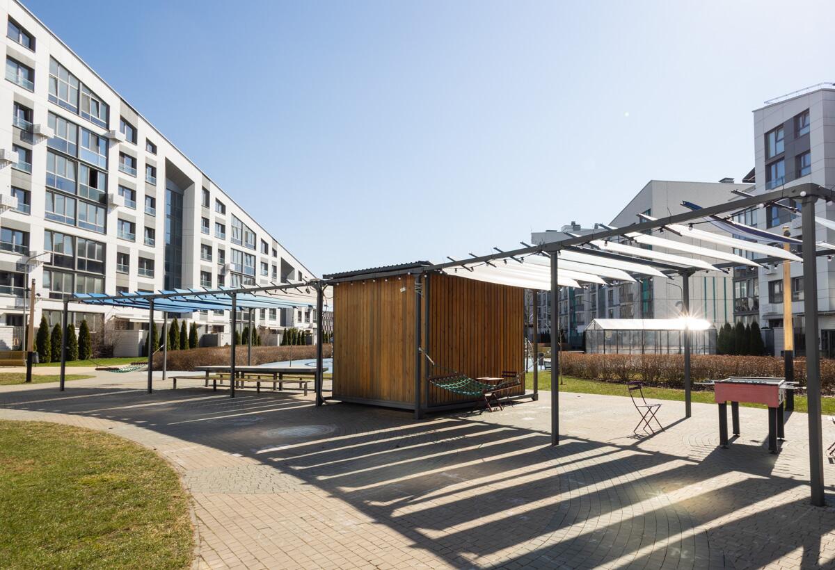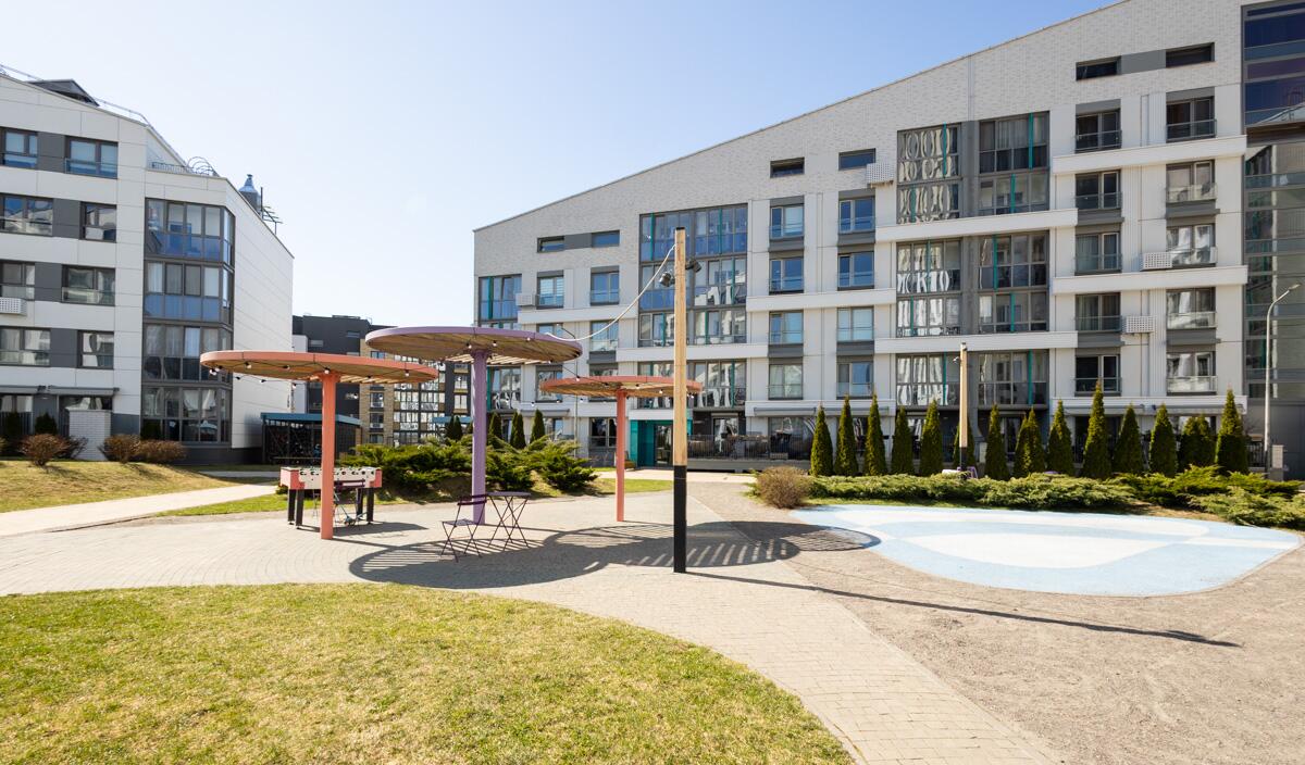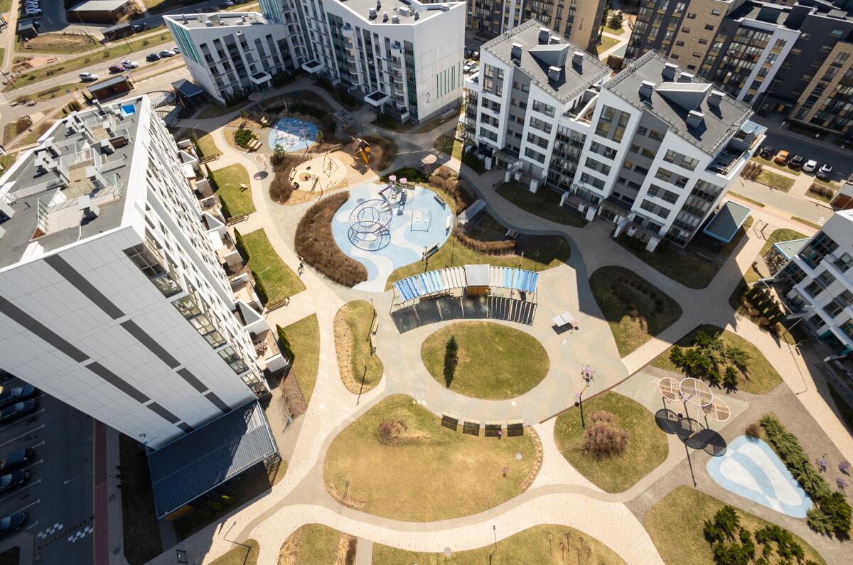 Двор закрытого типа без автомобилей — безопасное и комфортное пространство для жизни:ландшафтный дизайн, современные детские и спортивные площадки, зоны отдыха, велодорожки и велобоксы, Wi-Fi на территории, зоны для прогулок и даже отдельные пространства для домашних питомцев.