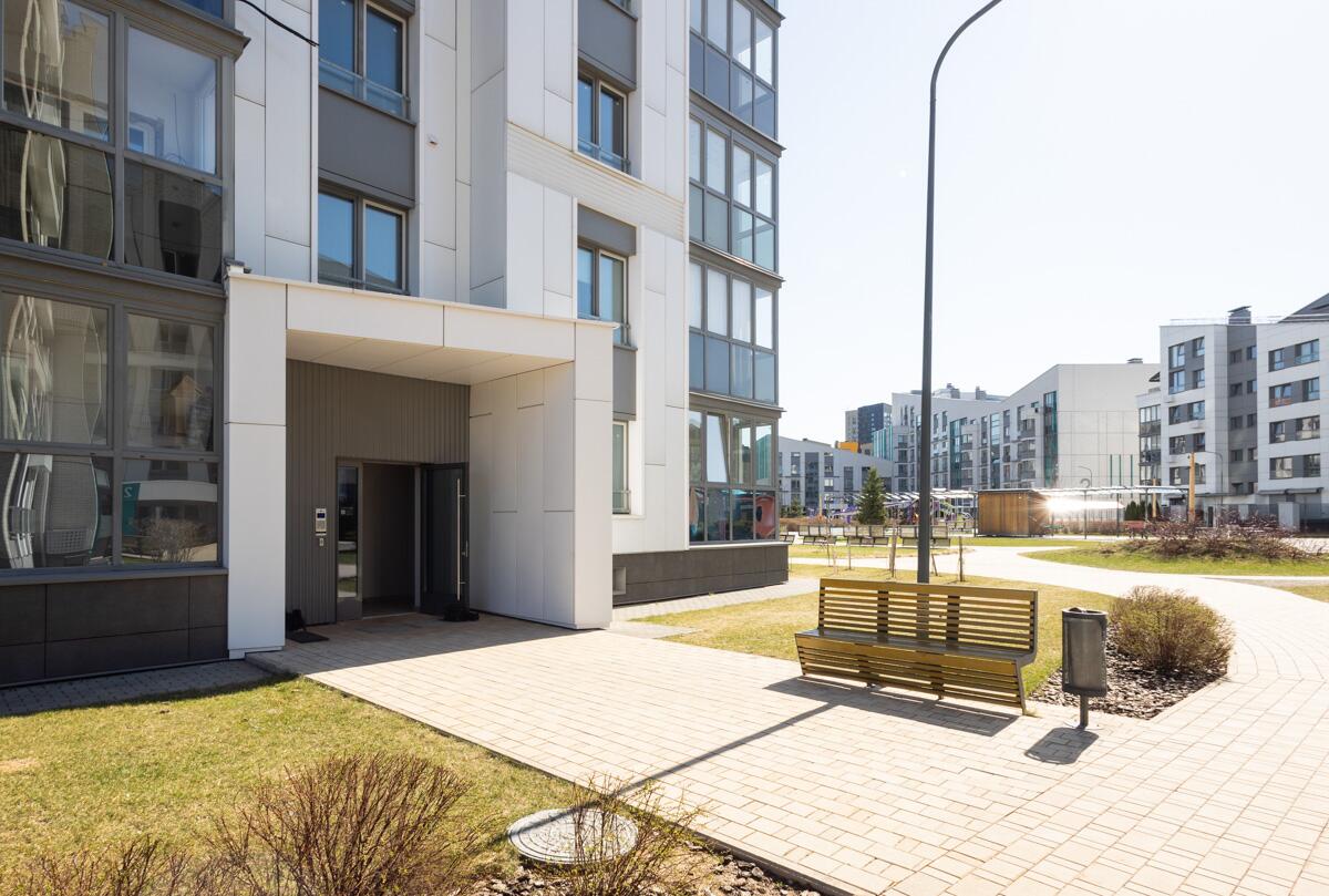 Квартира расположена в современном монолитном доме 2021 года постройки. В доме — 4 бесшумных лифта, стильная входная группа с прозрачными элементами и удобной системой доступа. Два выхода из подъезда: во внутренний закрытый двор и к парковке.