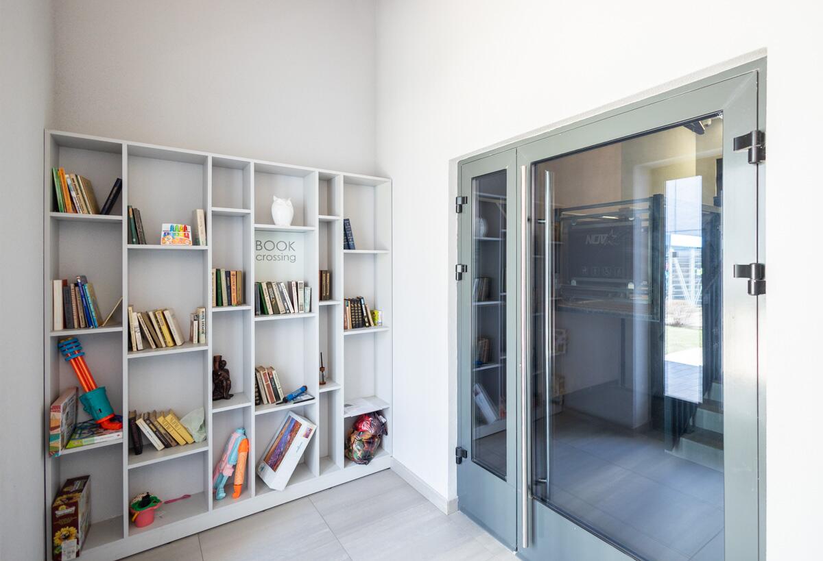 Дом оснащён современными системами: IP-видеонаблюдение, Face ID домофон, автоматические двери, помещение для мытья лап животных, зона обмена книгами.