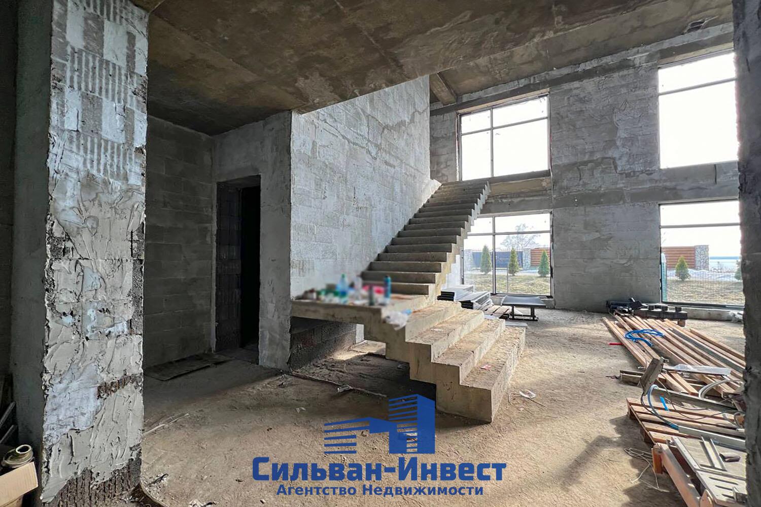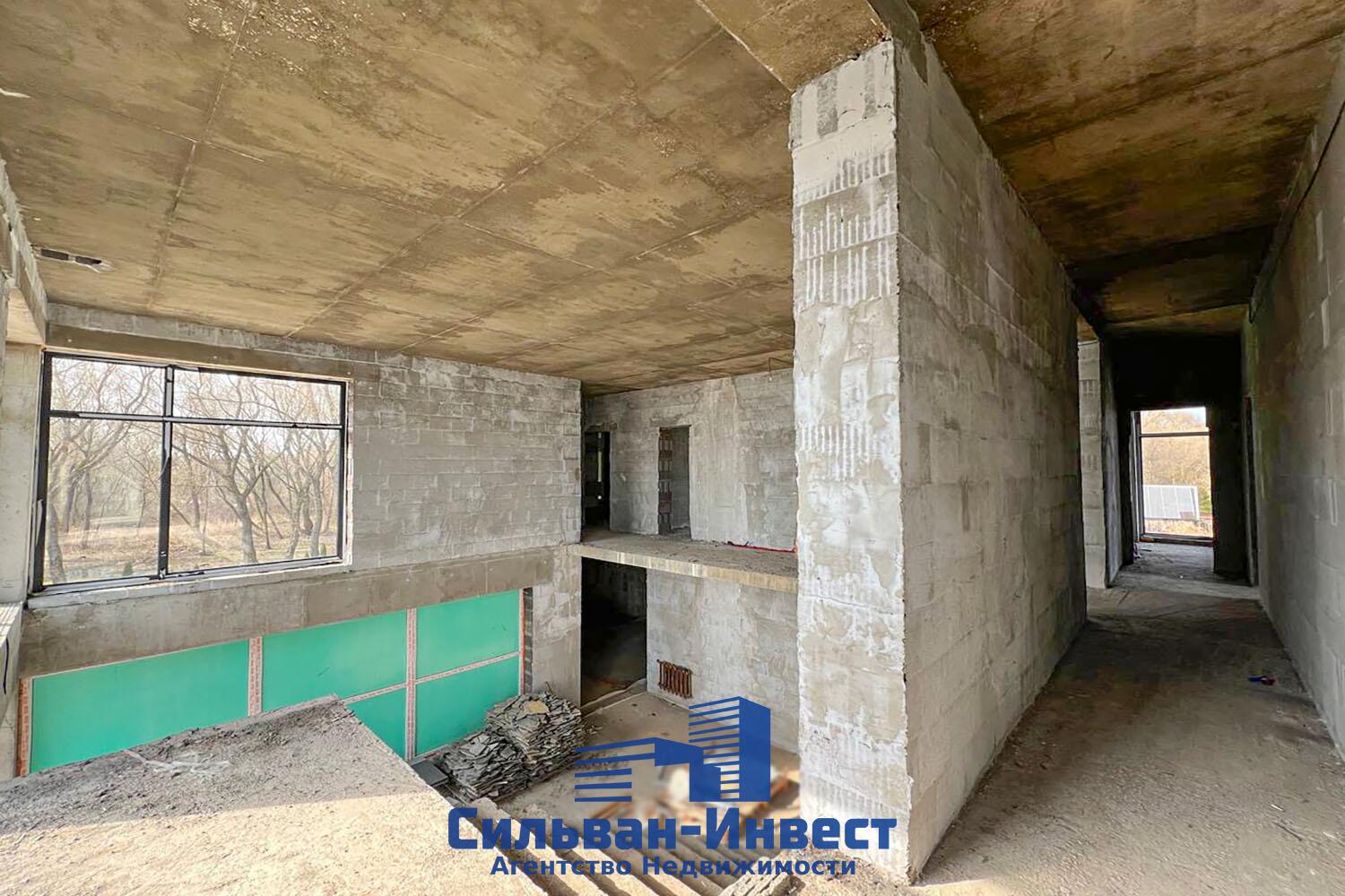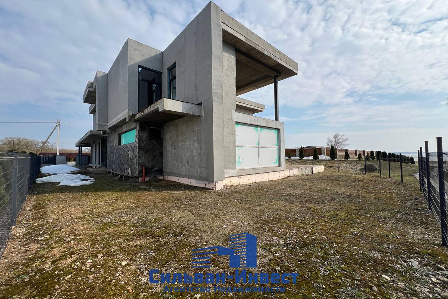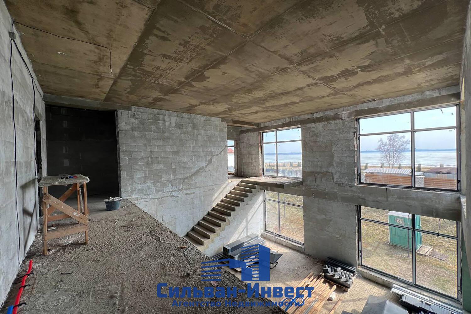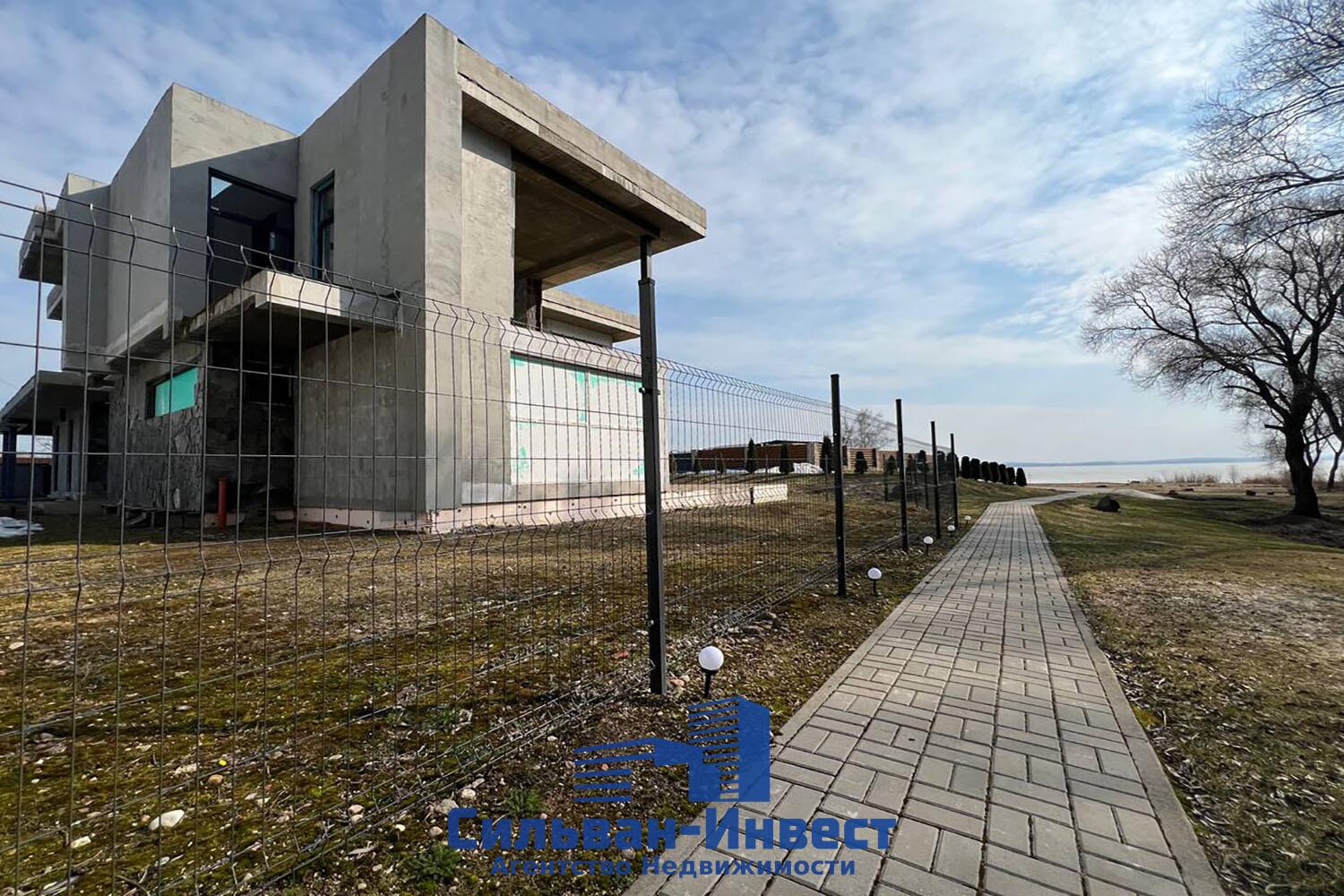 Дом у побережья Минского моря. Двухэтажный особняк площадью 528,3 кв.м. надёжно расположился на монолитном фундаменте на сваях, заглубленные на 6 метров. Керамзитобетонные блоки вместе с монолитными перекрытиями придают дому большую надёжность. Эксплуатируемая кровля создаёт дополнительные удобства и комфорт. Система водопонижения грунтовых вод была заложена с учётом прибрежного расположения. Фундамент забора так же заглублён сваями на 3 метра. Газ заведён на участок, скважина обеспечивает водоснабжение, а септик заботится об экологии. Помещения 1-го этажа дома: Тамбур, гостиная, кухня, прихожая, столовая, кладовая, гардероб, санузел, рабочий кабинет, гостевая спальня, мини-котельная, терраса. Помещения 2-го этажа:Холл, родительская спальня + санузел + гардероб + балкон, постирочная, кладовая, три спальни, санузел, две террасы (тренажёрный зал) Высокие потолки и изобилие естественного света придают дому лёгкость и свободу.Данный объект является незавершённым законсервированным капитальным строением с полученными документами и инвентарным номером. Площадь земельного участка 0,0823 га. Проект и архитектурные решения можно получить по запросу. Сезон загородной жилой недвижимости уже наступил. До встречи на просмотре!