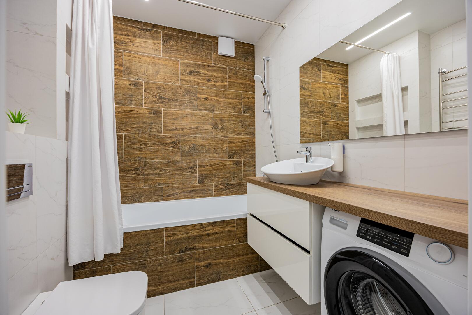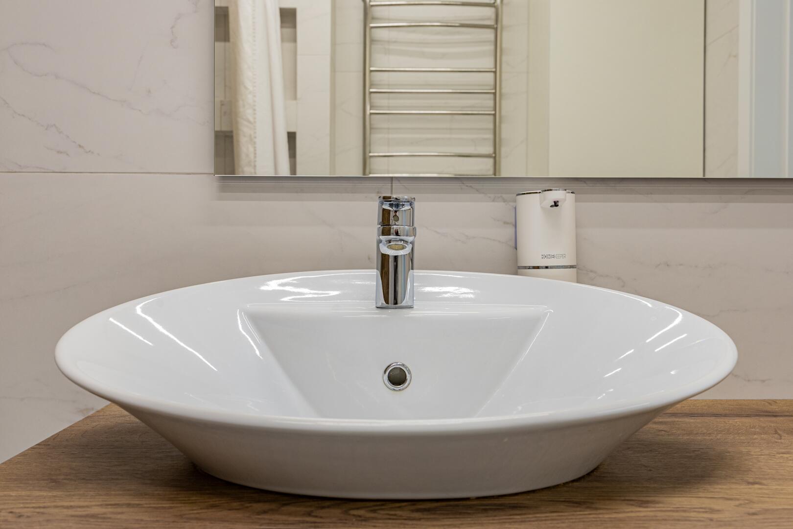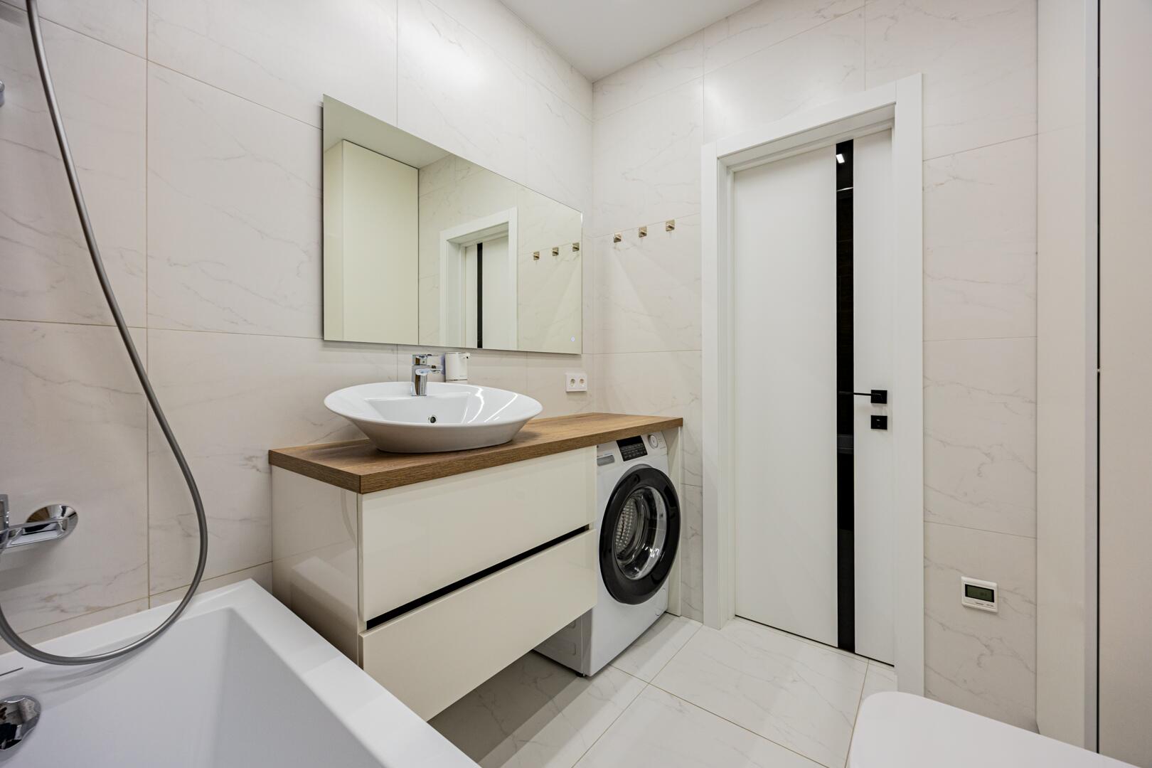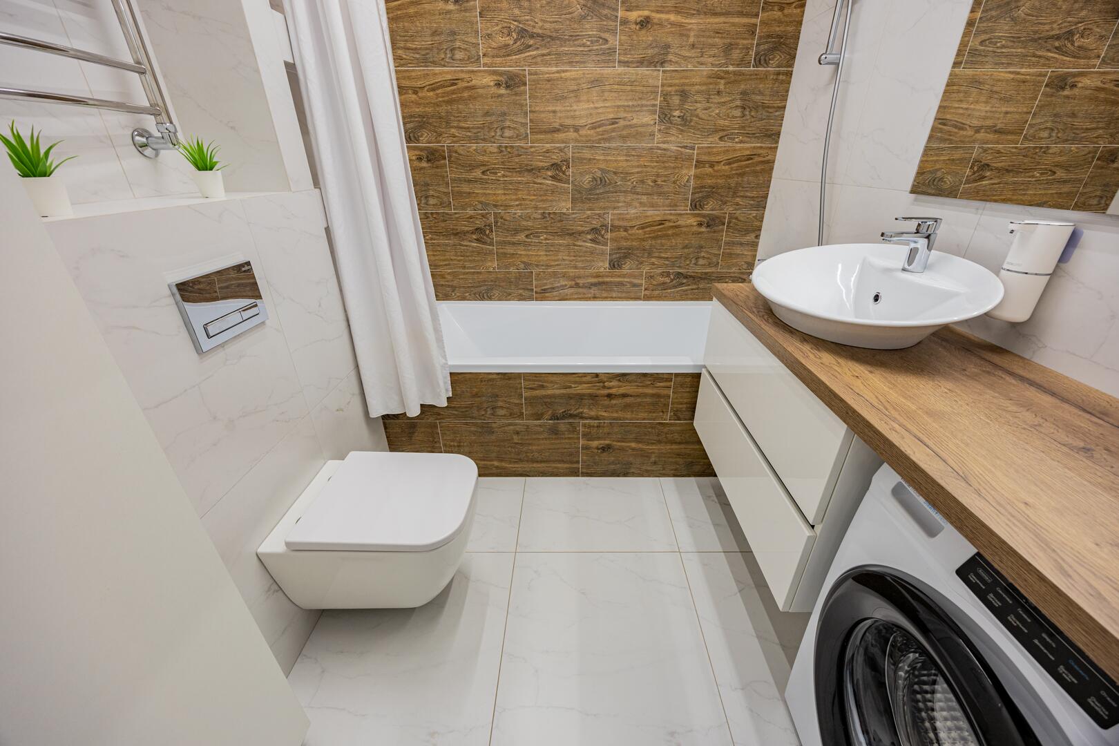 ∙ В санузле керамогранитная итальянская плитка, сантехника премиального класса, пол с подогревом.