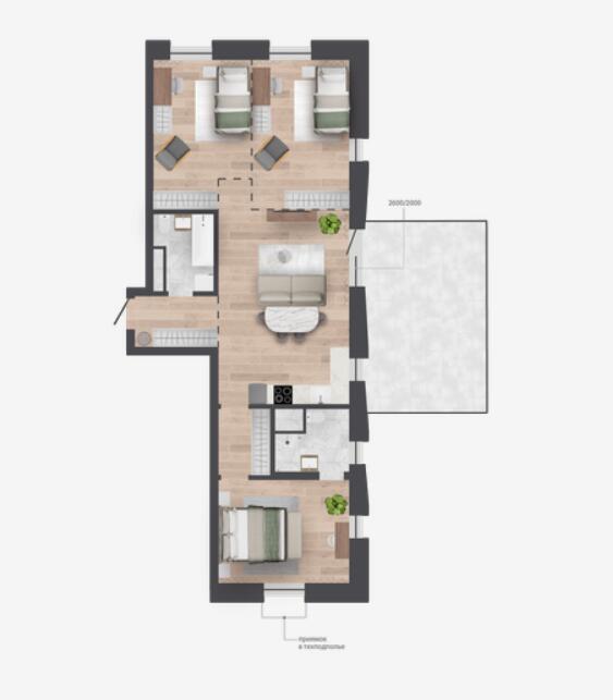 Рядом благоустроенная прогулочная зона и зелёный коридор с воркаут и баскетбольной площадкой. Выходя из дома, вы попадаете не в промзону, а в пространство для активного и спокойного отдыха.