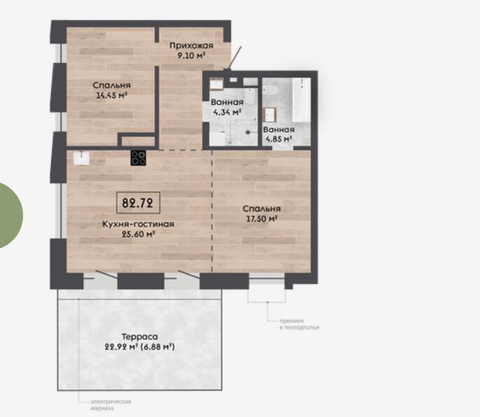 Квартира номер 4 с террасой 22.92м2.