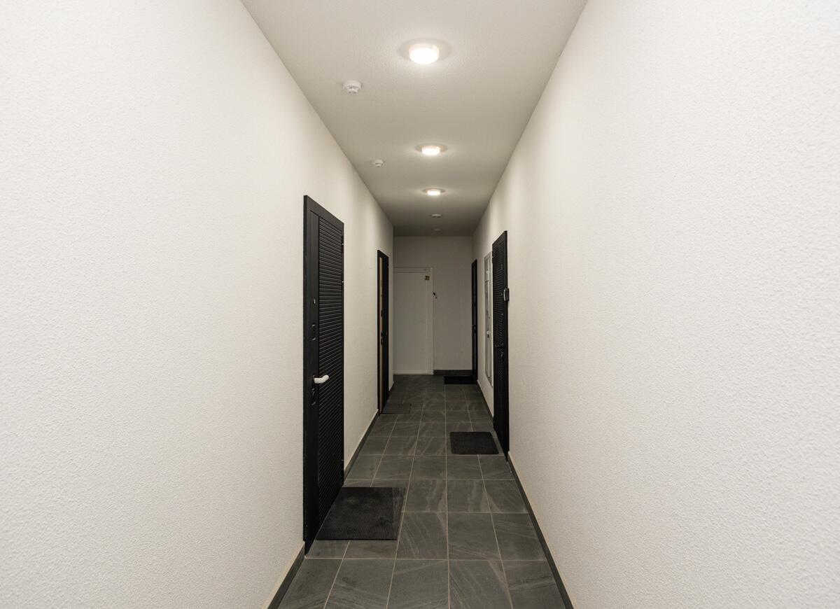 На первом этаже дома расположены коммерческие помещения - кафе, магазины, аптеки и другие объекты городского ритейла, что обеспечивает дополнительный комфорт для жильцов и гостей.