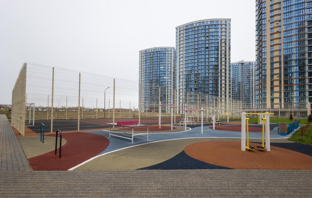 Благоустройство территории включает в себя уютные зоны отдыха с ландшафтным дизайном, детские игровые площадки и места для занятий спортом. Концепция «двор без машин» обеспечивает безопасность и тишину во дворе, поскольку автомобили размещаются на открытых парковочных местах за пределами дворовой зоны или в подземных паркингах.