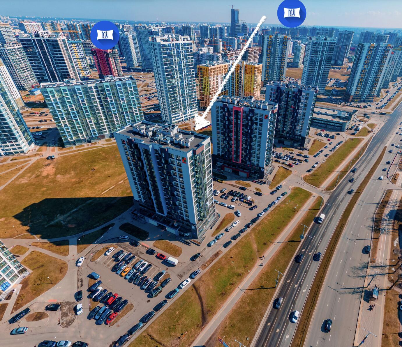 В шаговой доступности: остановки наземного общественного транспорта, до станции метро «Аэродромная» (уже работает). Рядом пр-т Мира – центральная магистраль комплекса «Minsk World», обеспечивает связь второго транспортного кольца с улицей Кижеватова. За считанные минуты можно добраться как до центра города, так и до МКАД.