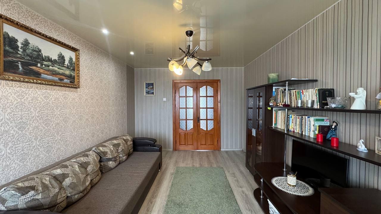 Ищете готовую квартиру без лишних вложений в спокойном районе с инфраструктурой под рукой?Этот вариант — именно такой.Квартира с удобной планировкой: три раздельные комнаты (15,9 / 13,2 / 8,3 м2) — комфортно для семьи и понятное зонирование пространства.Пятый этаж — без соседей сверху и лишнего шума.Уже сделано важное:— заменены коммуникации в санузле;— установлены счётчики на газ и воду;— есть домофон;— квартира продаётся с мебелью — можно заехать сразу после сделки.Локация закрывает повседневные задачи: рядом банк, школа, детские сады, магазины, почта и общественный транспорт.А лес поблизости — это возможность отдыхать и гулять без лишних поездок.Такие квартиры выбирают за сочетание удобной планировки, готовности к проживанию и правильного окружения.Звоните и записывайтесь на просмотр — такие варианты долго не задерживаются.ООО «ЭТАЖИ юнайтед»УНП 193673318Договор 768/1 от 08.04.2026Лицензия на оказание риэлтерских услуг № 02240/460 МЮ РБ от 03.04.2023