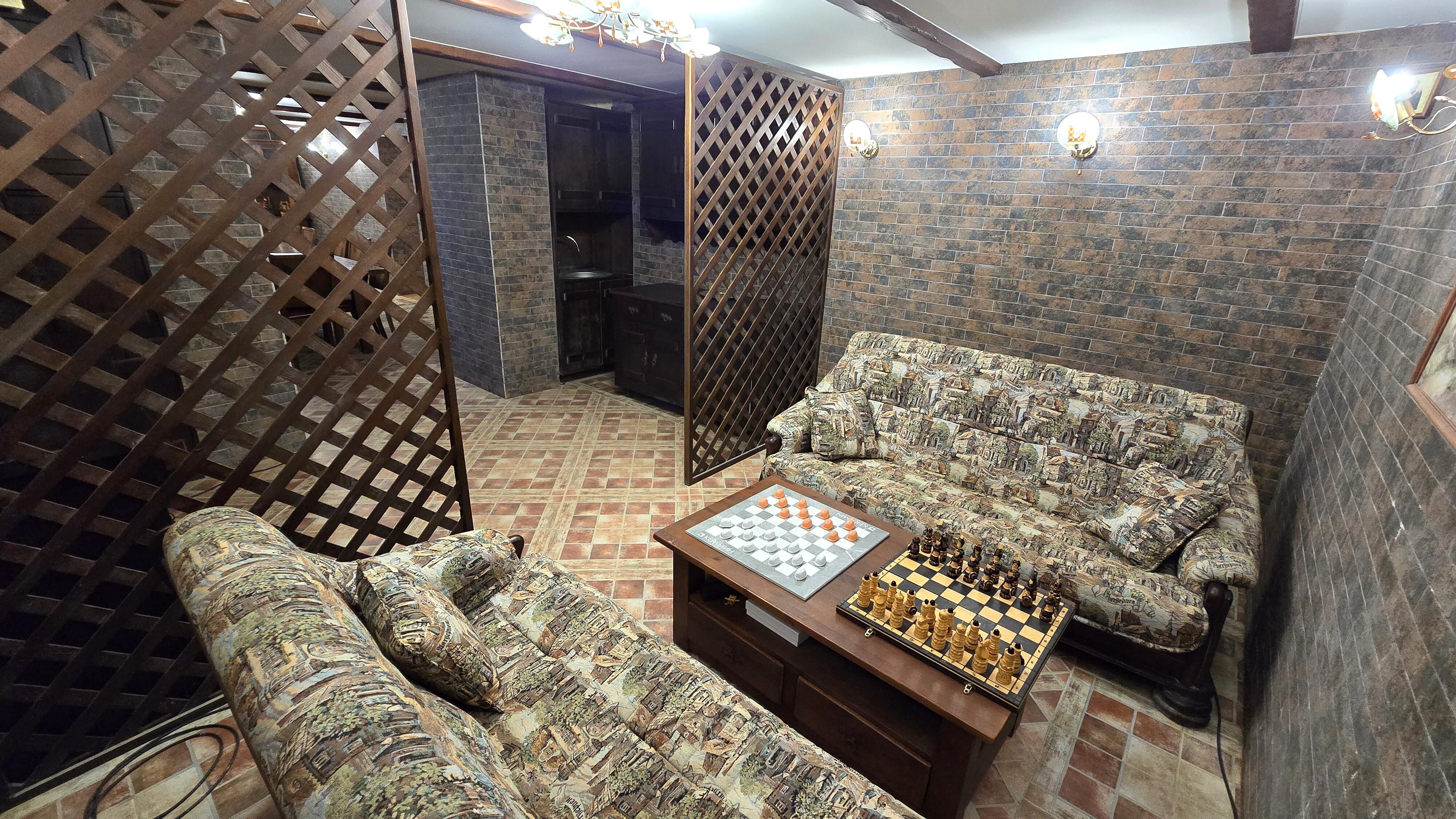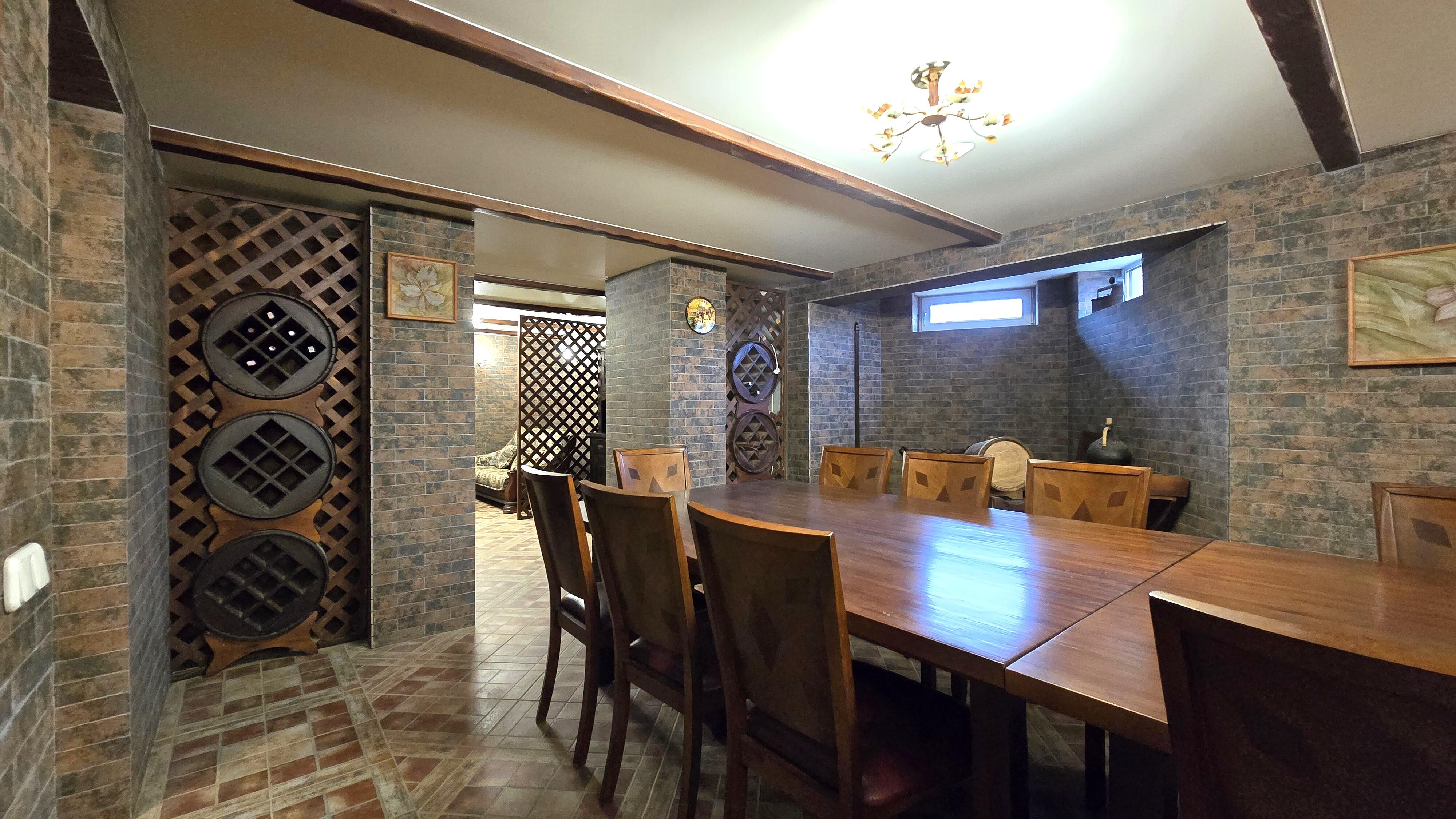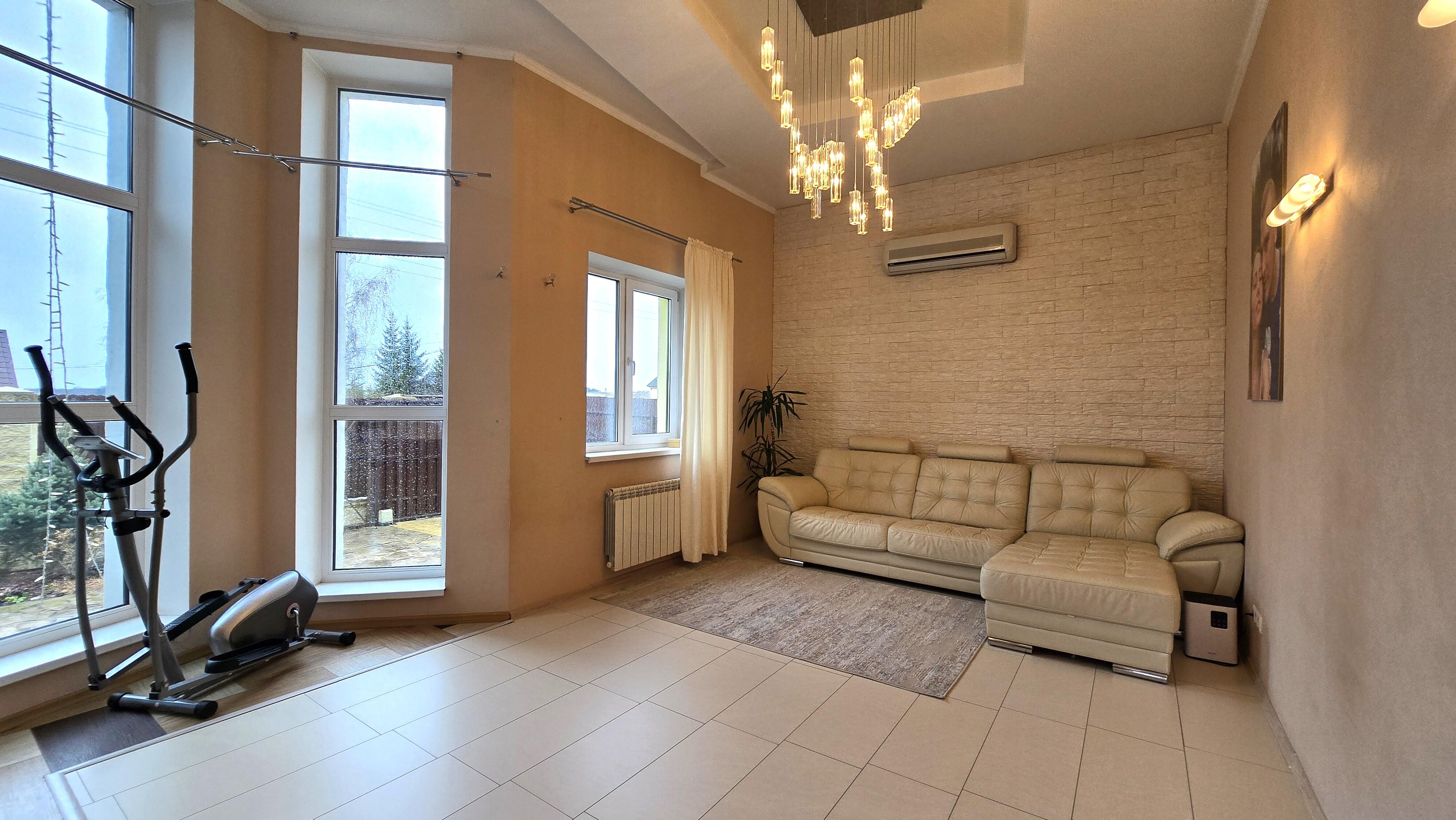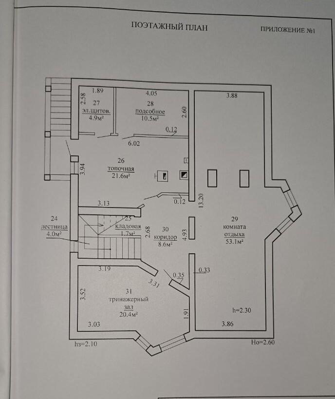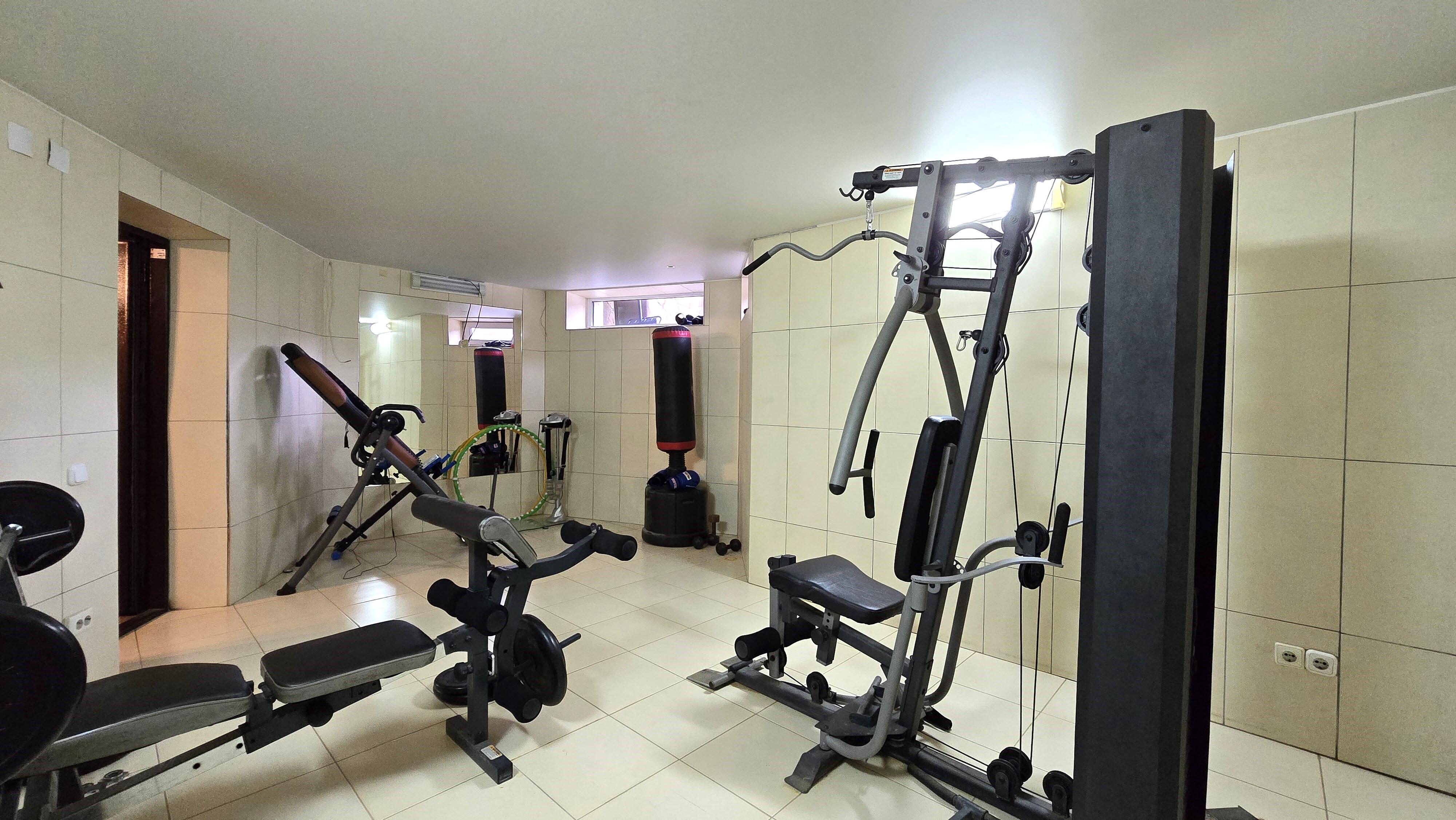 -- Цоколь – комната отдыха (53 м2), тренажёрный зал (20,4 м2), топочная, прачечная.