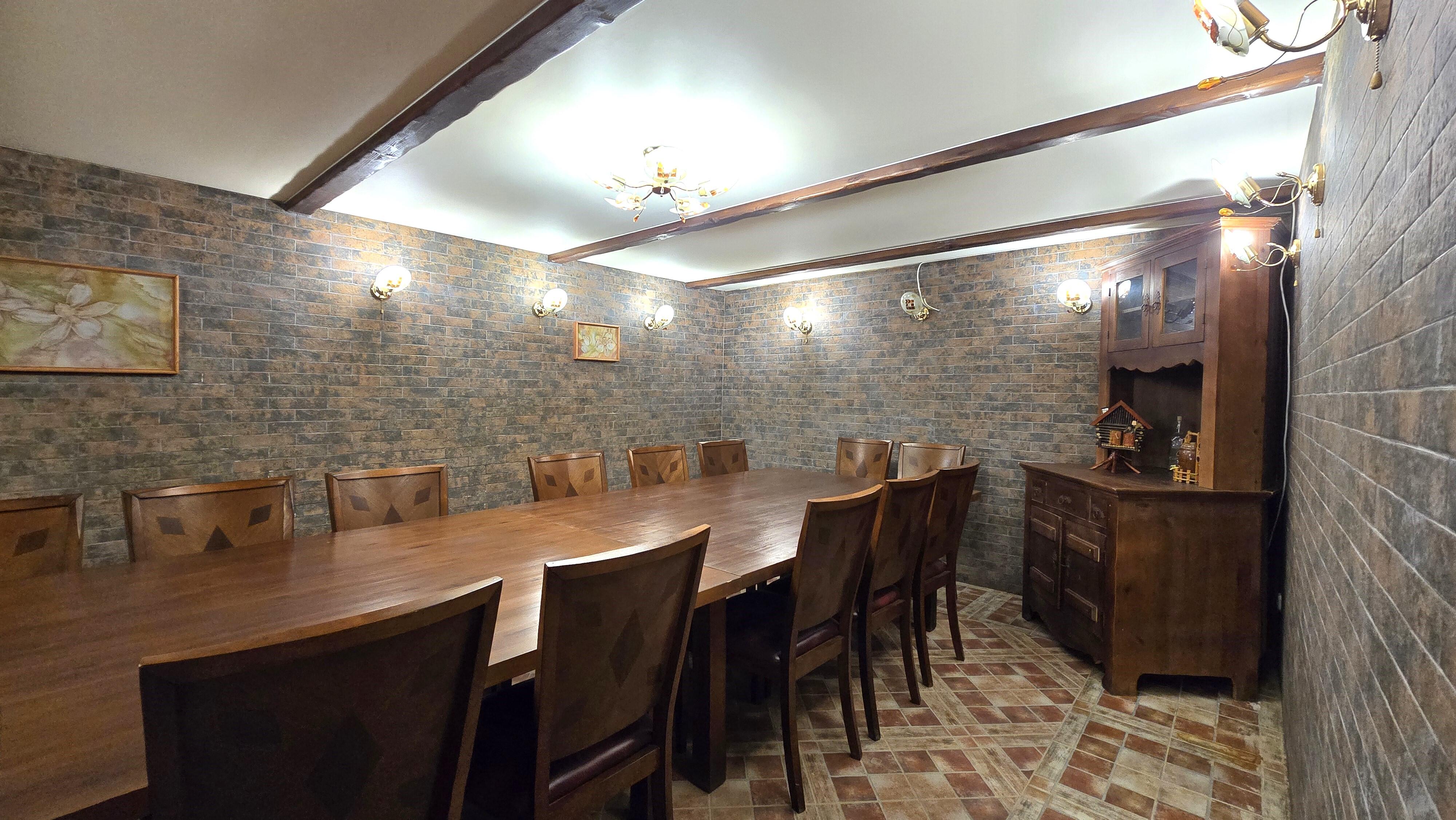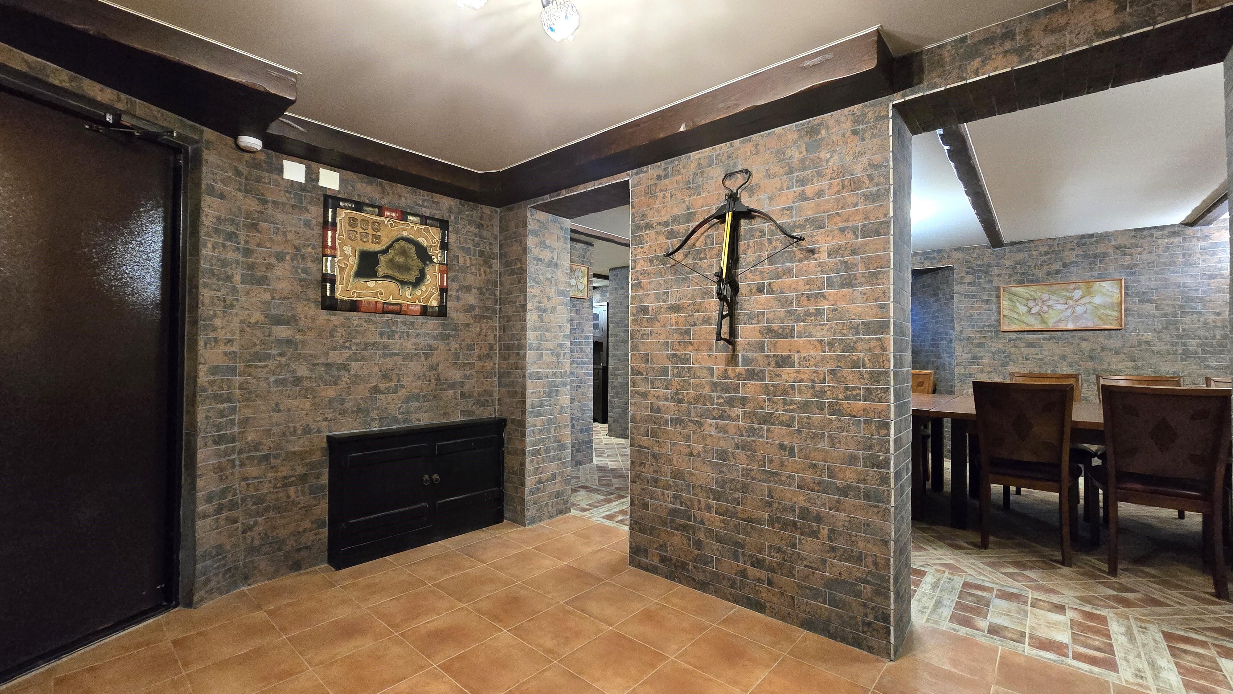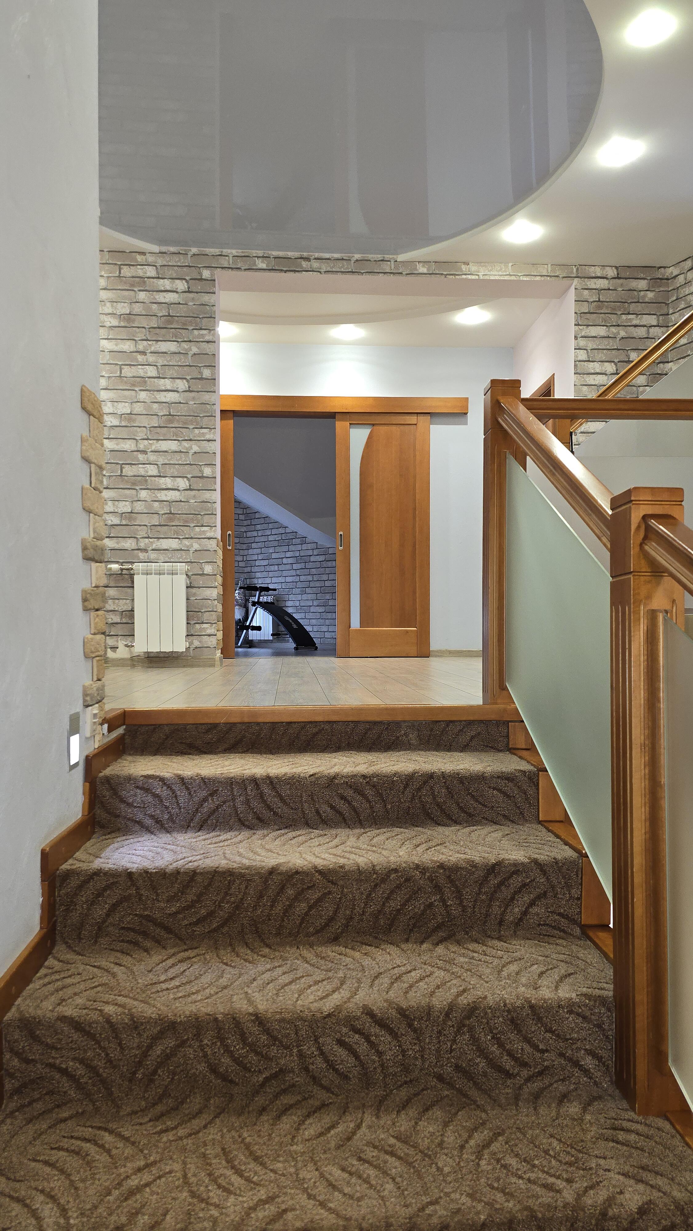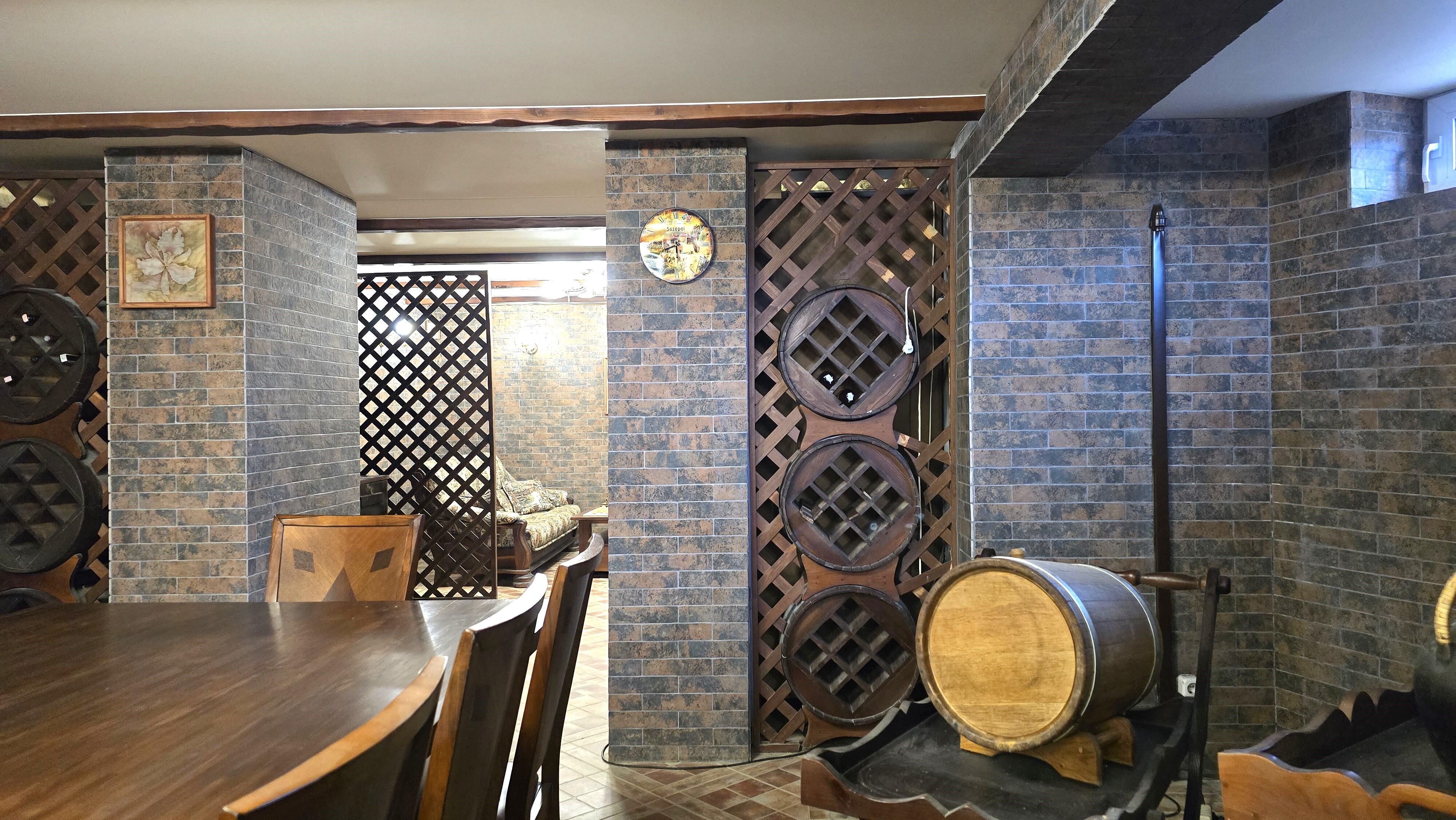 -- Цоколь – комната отдыха (53 м2), тренажёрный зал (20,4 м2), топочная, прачечная.