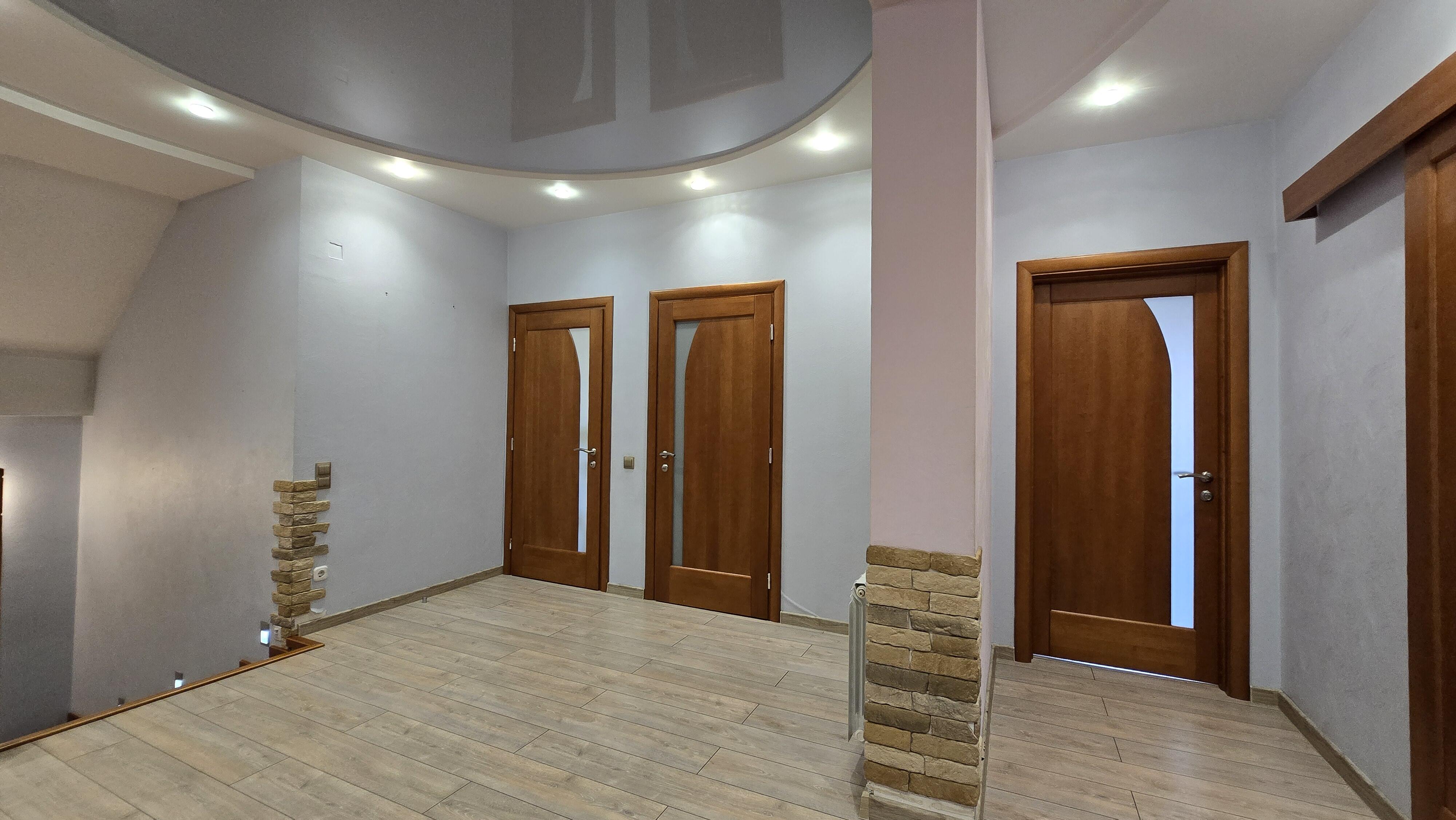 -- 1-й этаж – 2а входа, 3и спальни, 2е кухни, гостиная 23,3м2, 2 санузла, гардероб, веранда.
