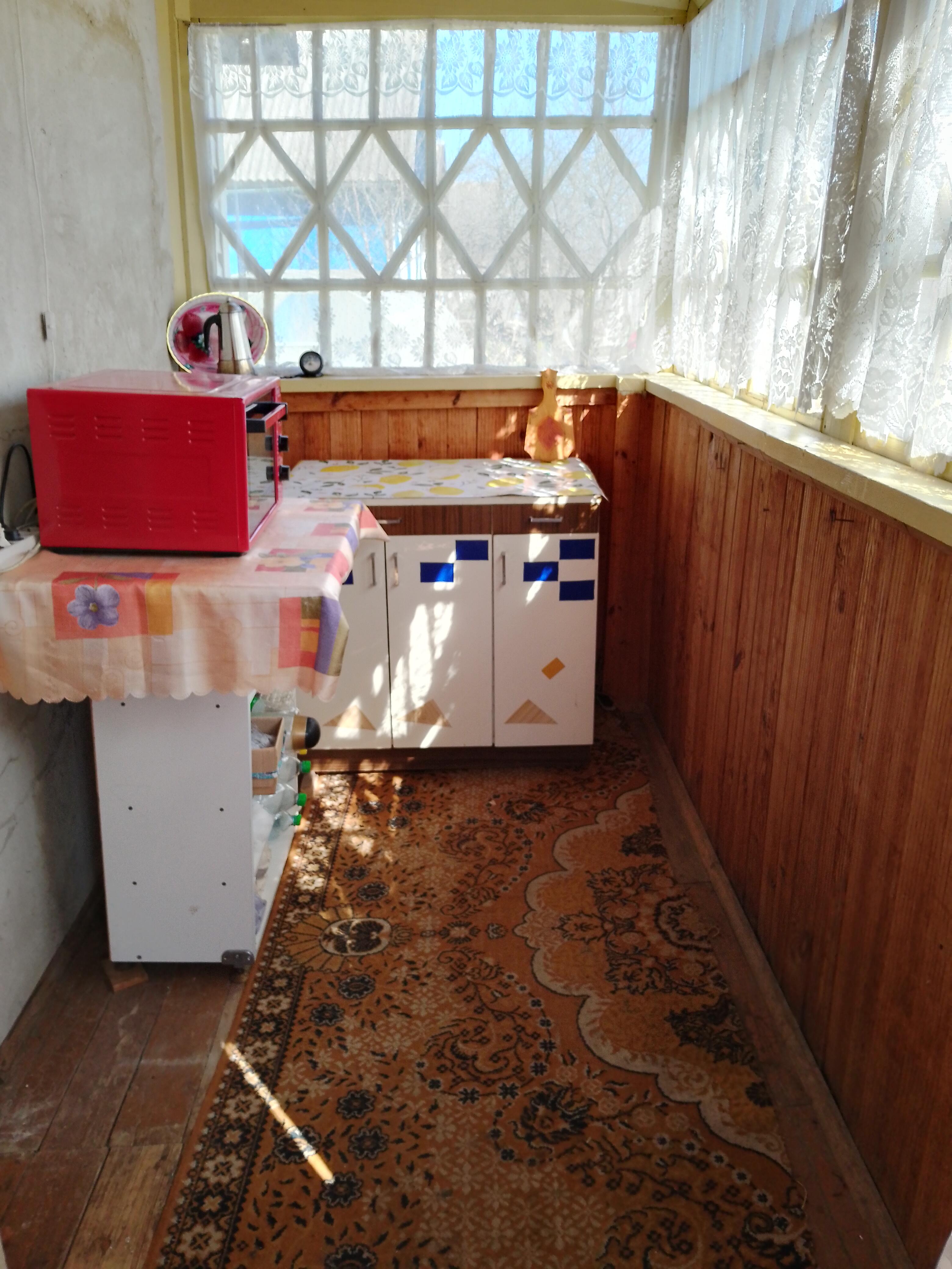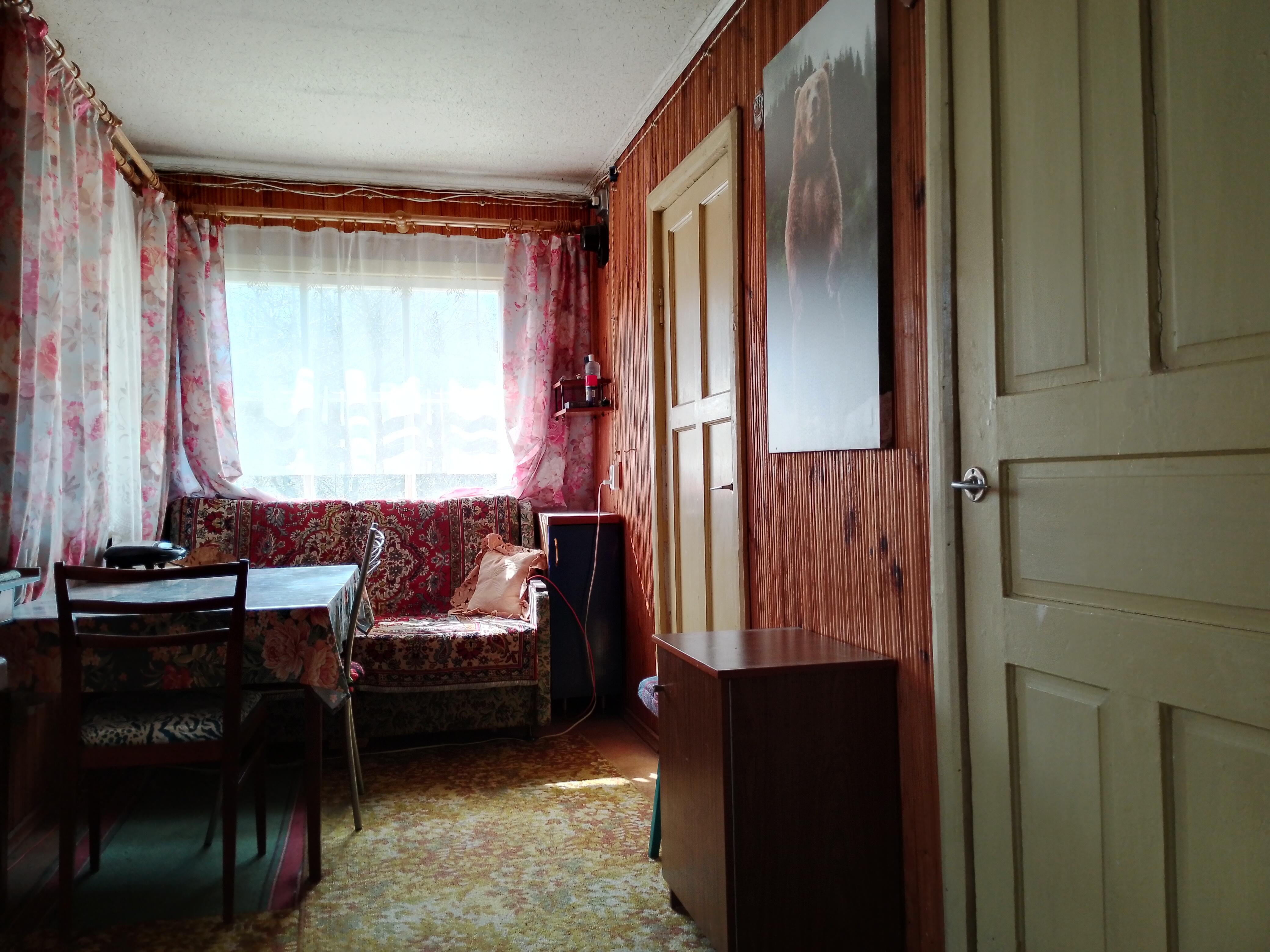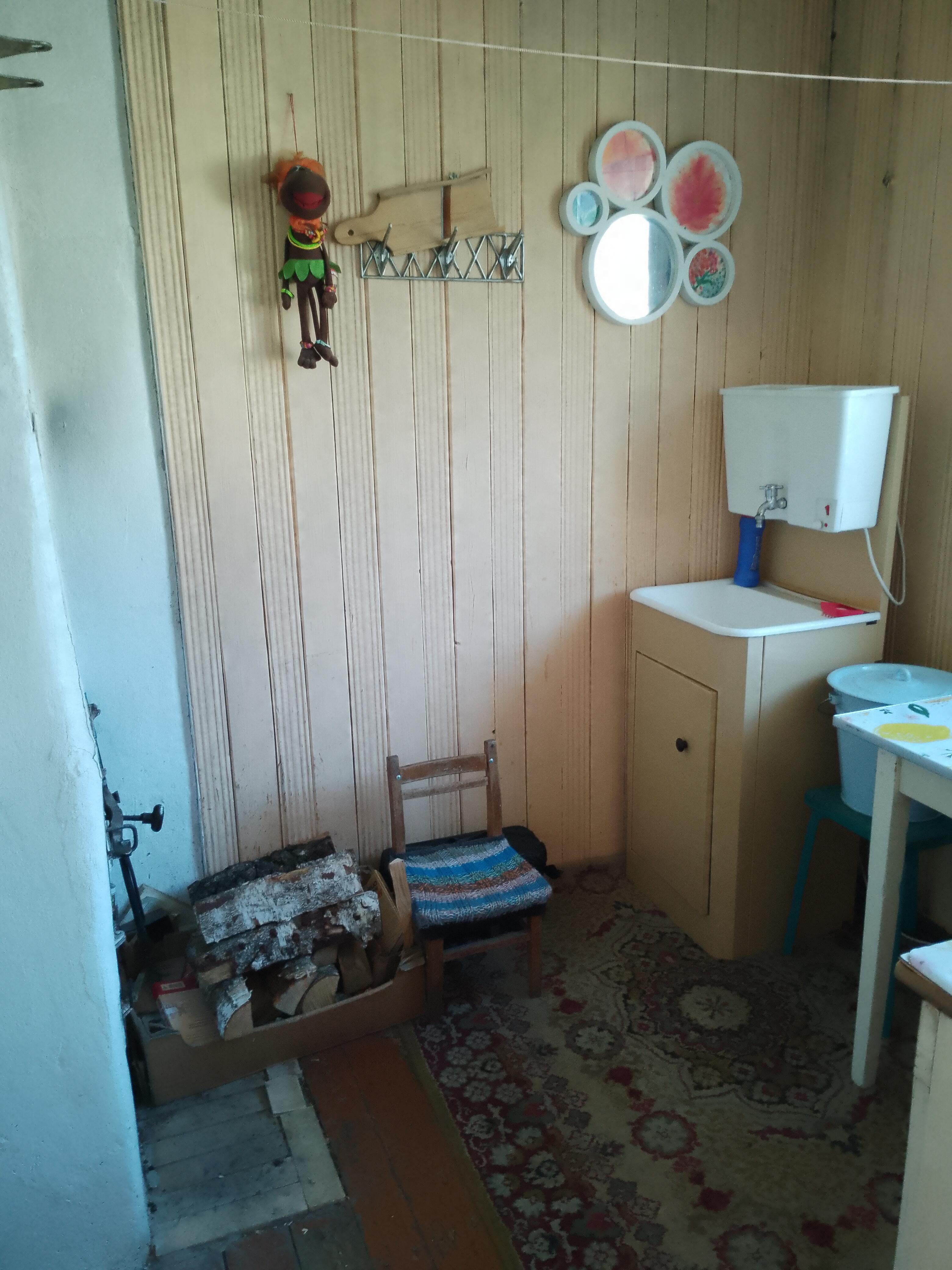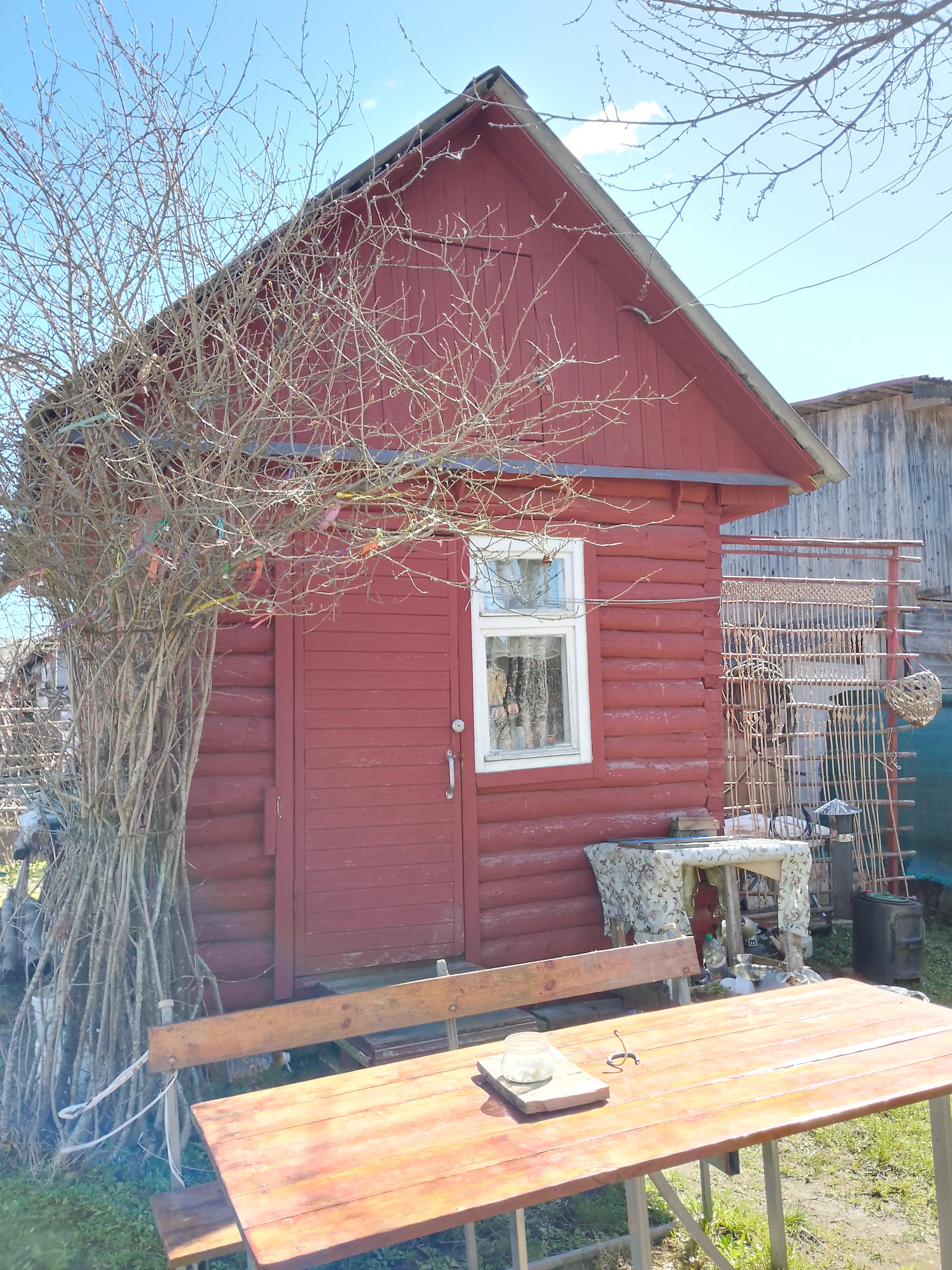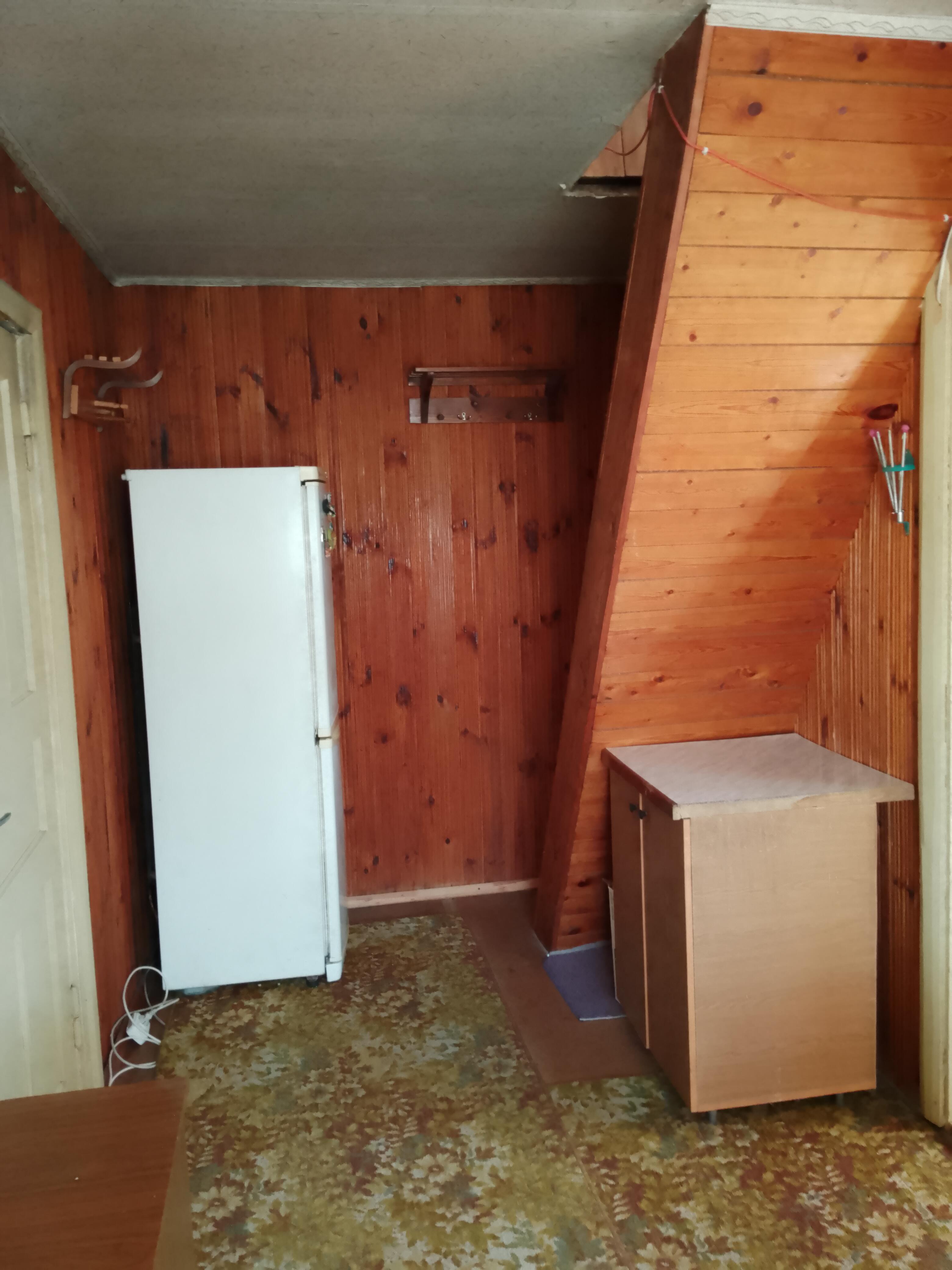 Дача - 41 кв.м., три жилые комнаты (10.9м.кв. + 13.3 м.кв.71 м.кв.), кухня (5.2 м.кв.), веранда (4.6 м.кв.). Высокий бетонный фундамент. Дом изначально каркасно-засыпной, обложен кирпичом + обшит панелями ПВХ с утеплением. Перекрытия деревянные, полы дощатые, кровля из шифера. Оконные проемы – стеклопакеты ПВХ + деревянные двойные рамы. В доме есть рабочая печь, обогревающая весь первый этаж. В кухне: настольная газовая плита на 2 конфорки (газовый баллон), набор кухонной мебели, мойка с тумбой и электрическим водонагревателем, стол кухонный. В жилых комнатах остаётся мягкая мебель и кровати.