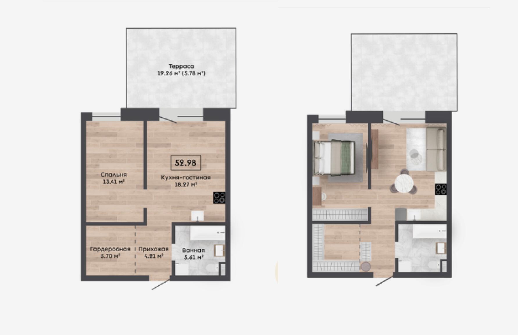 Квартиры с участками-террасами на 1 этаже (19–23 м2) Мастер-спальни с гардеробными и санузлами Мансардные квартиры с антресолями Квартиры с террасами на кровле Такие форматы подойдут тем, кто ищет квартиру как частный дом или квартиру с террасой в Минском районе.