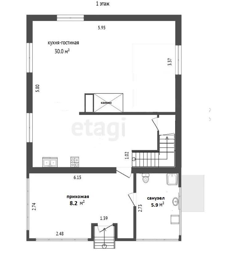 - Первый этаж: Просторная кухня-гостиная с камином, обеденная зона, уютный функциональный санузел и коридор с диваном и вместительным шкафом. Кухонный гарнитур из массива дуба, посудомоечная машина, плита с духовым шкафом, вытяжка.
