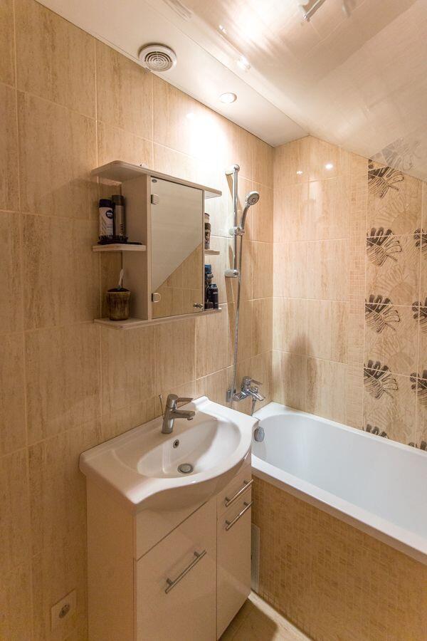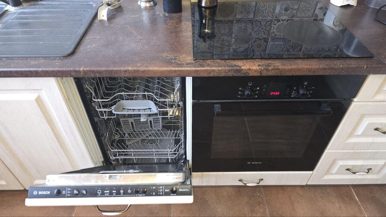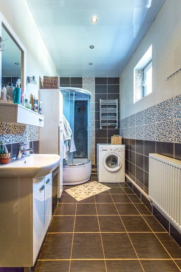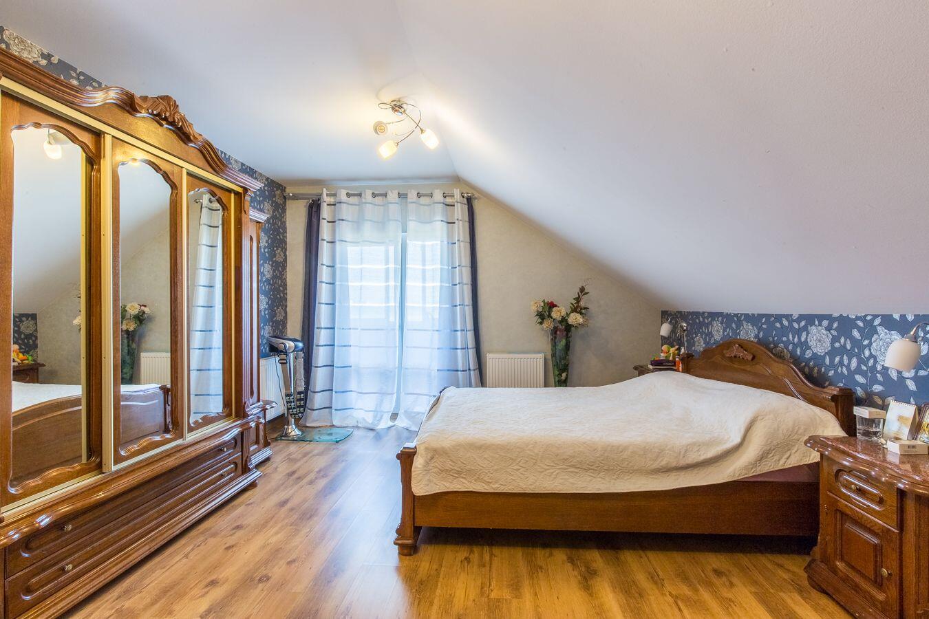 Кухня светлая и элегантная, оборудована техникой BOSCH: индукционная плита, посудомоечная машина. Большая и шикарная гостиная в классическом стиле с камином. В коридоре, санузле и кухне полы - керамическая плитка с подогревом. На мансардный этаж ведёт лестница из массива ольхи и дуба.