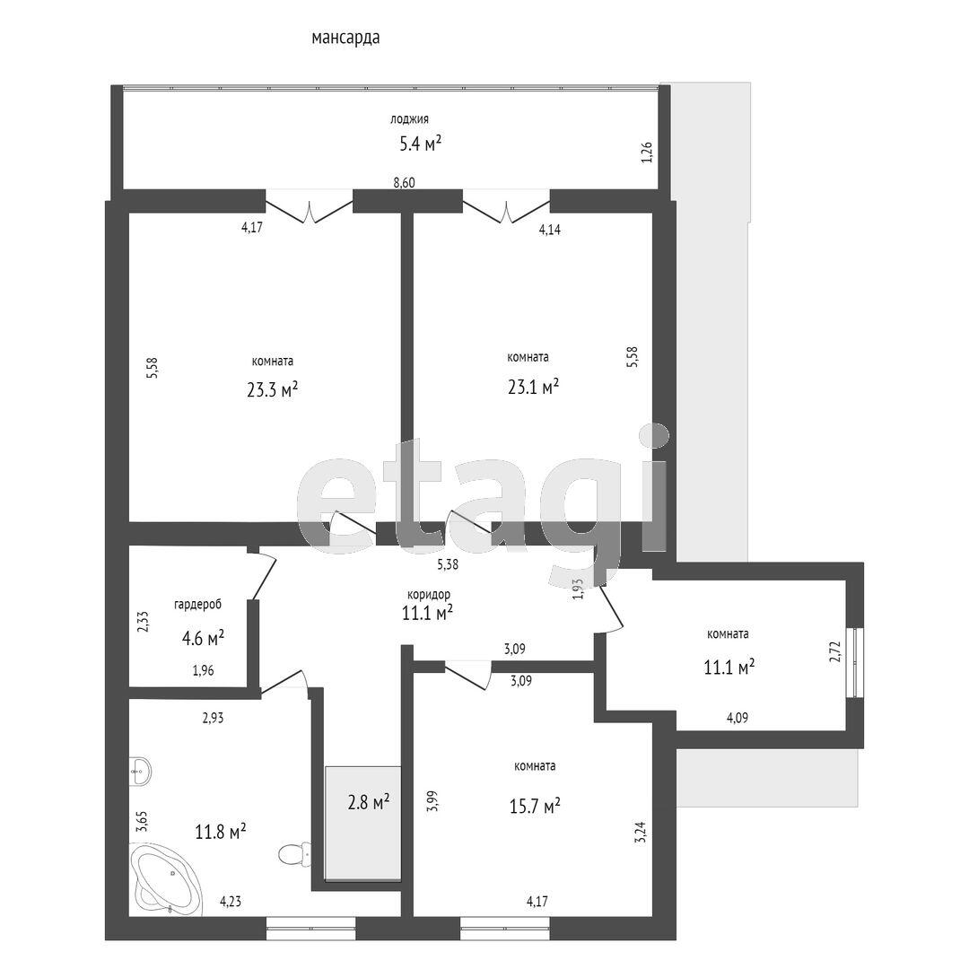 Мансардный этаж: три просторные жилые комнаты (из двух комнат выход на лоджию), санузел.