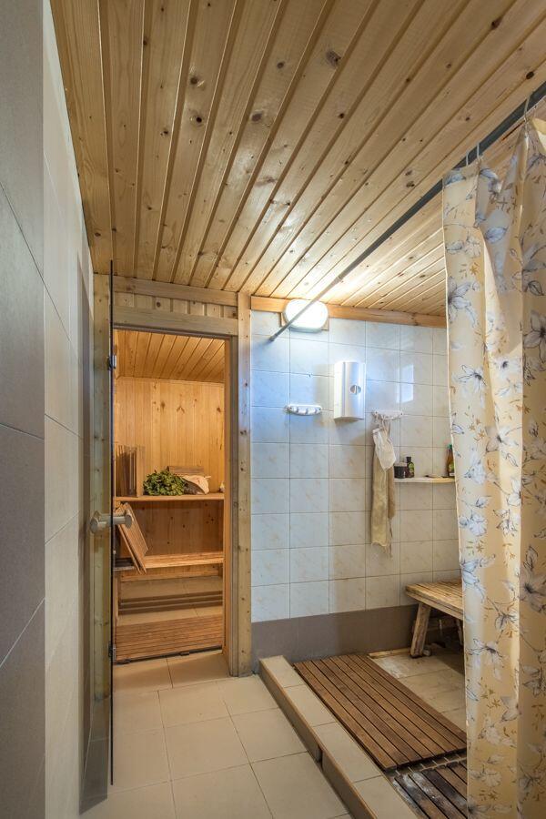 Полноценный высокий цокольный этаж содержит: подсобные помещения для хранения, топочную, сауну с комнатой отдыха, летнюю кухню. Из цокольного этажа предусмотрен удобный выход на участок к зоне отдыха.