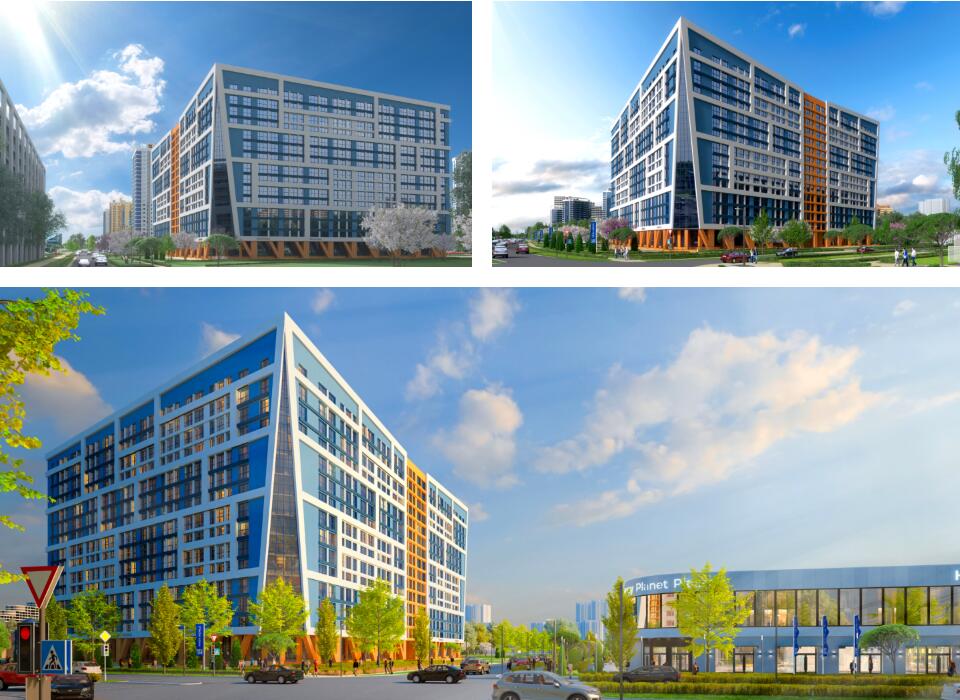 Дизайнерское решение фасадов в сочетании с запоминающимся силуэтным решением застройки будет впечатлять с различных точек прилегающей местности и города.