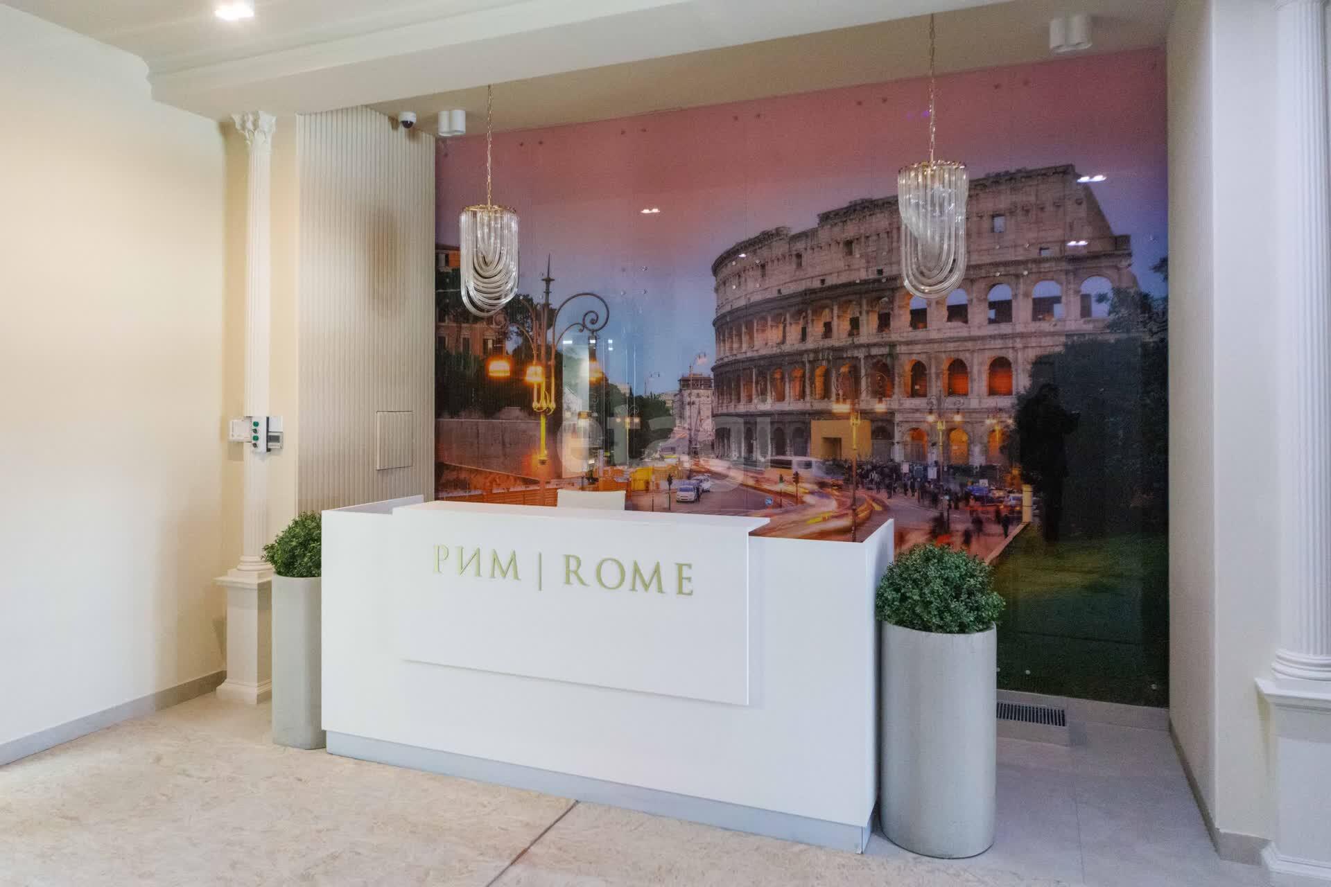 · Дизайнерское лобби, где вы почувствуете себя особенным: зона отдыха, стойка консьержа, изображения Колизея — символа Рима, букшеринг, а также туалетная комната с пеленальным столиком.
