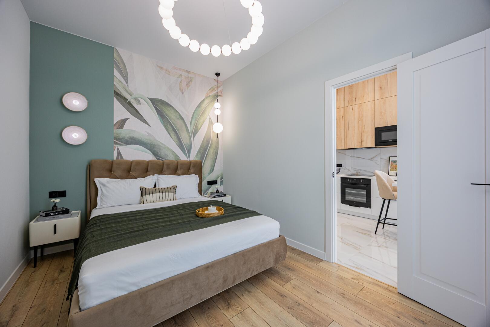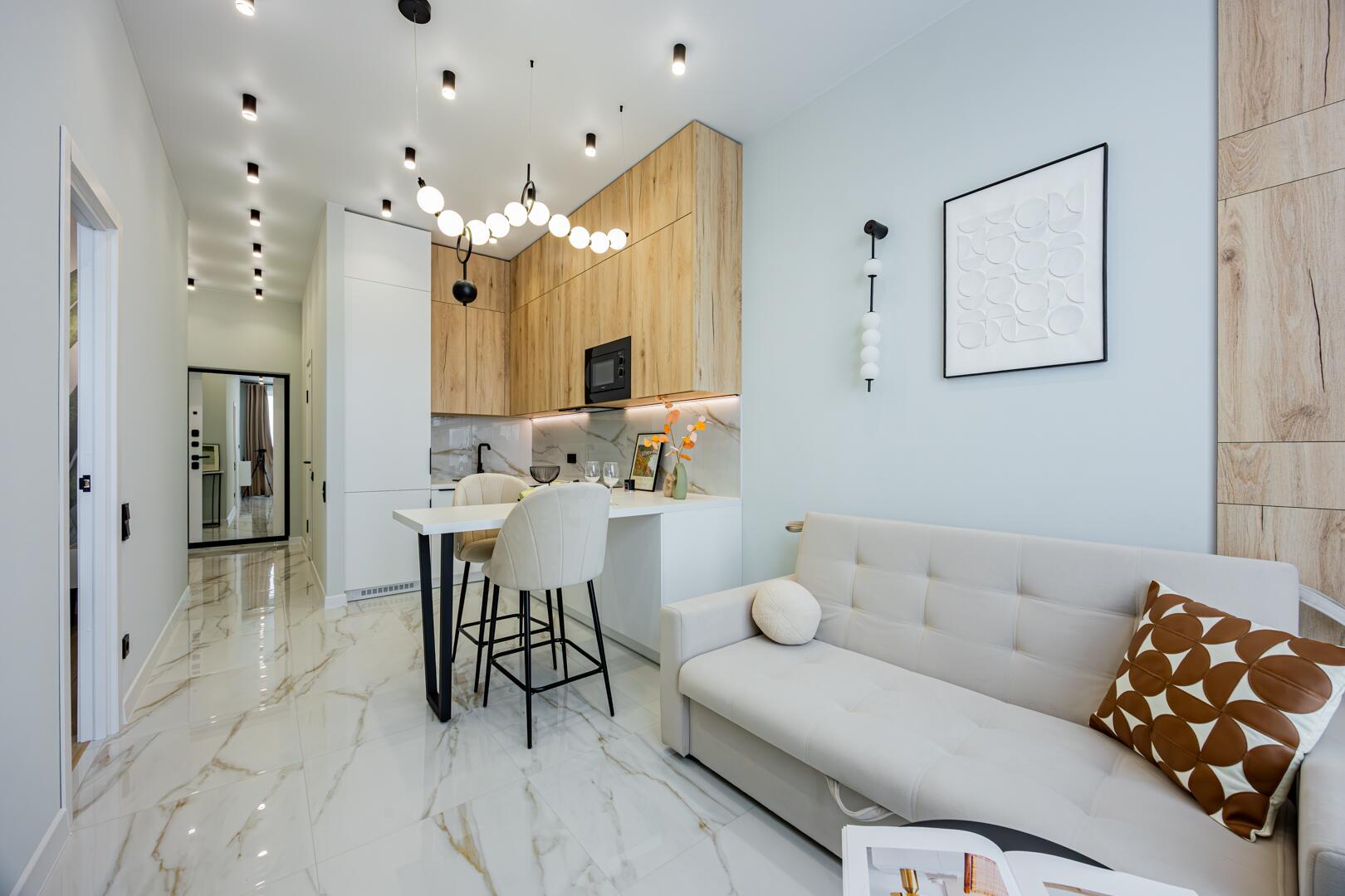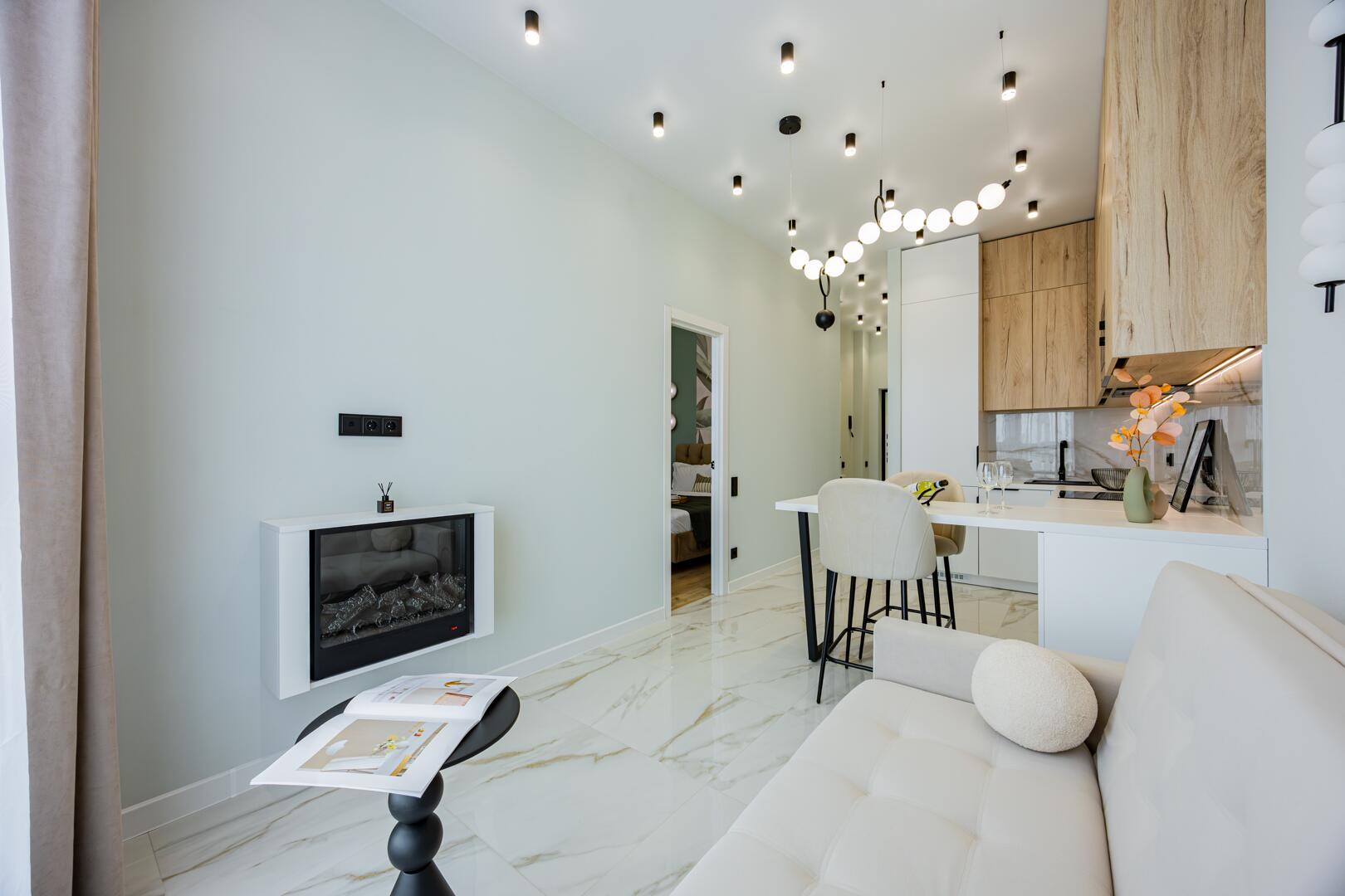 Продается современная квартира с изолированной комнатой, кухней-гостиной, гардеробной.
