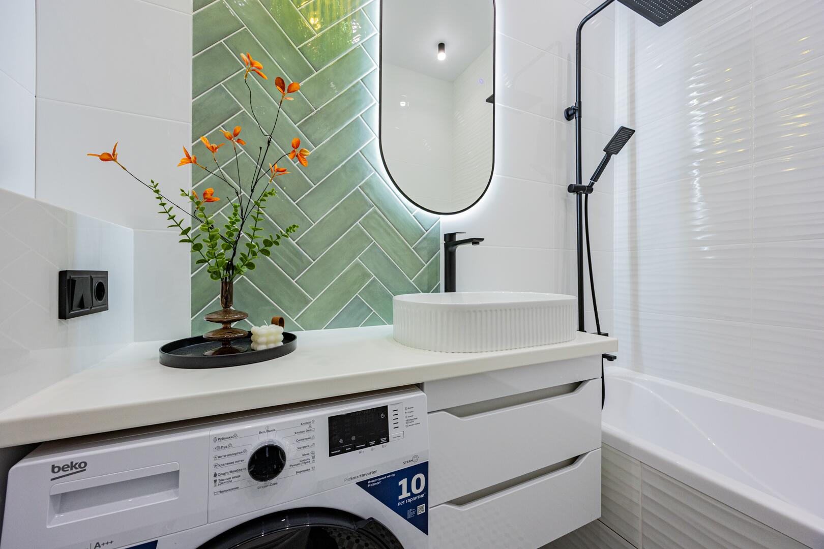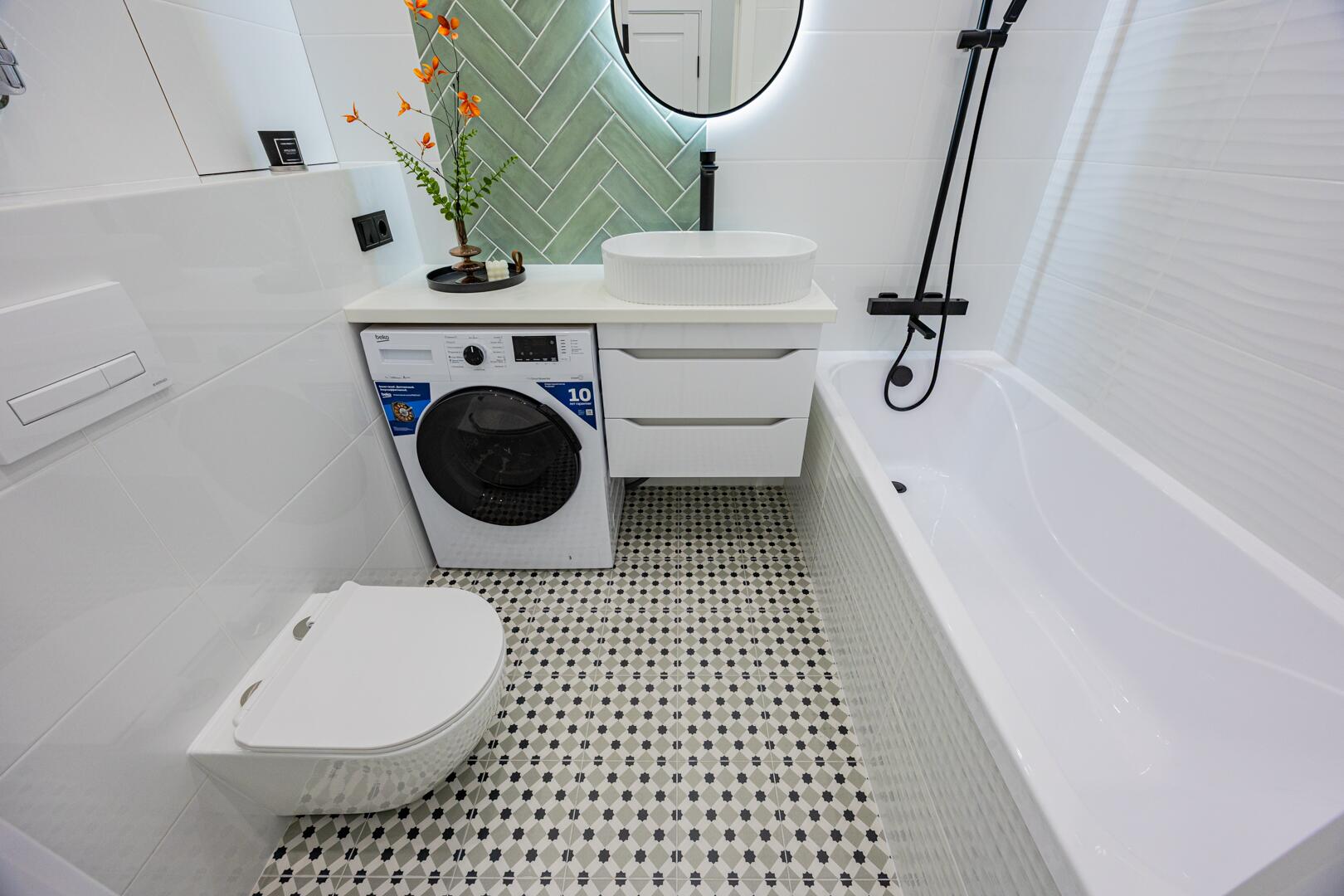 ∙ В санузле итальянская плитка, сантехника премиального класса, стиральная машина.