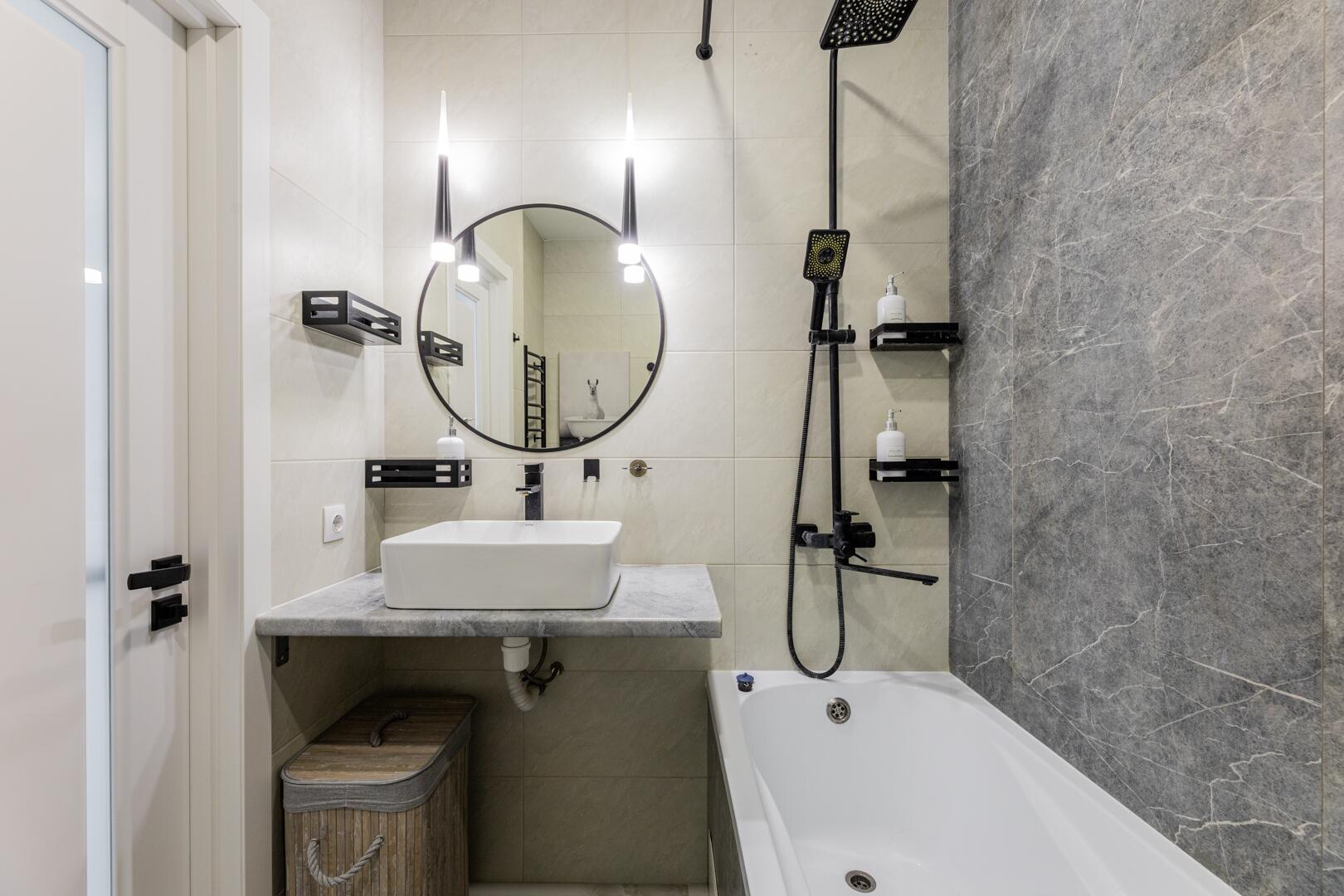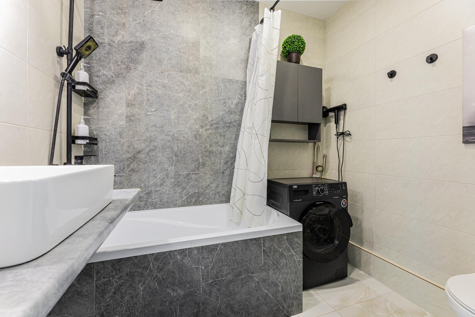 -Кондиционер-Санузел- ванна, смеситель с тропическим душем, раковина со столешницей, стиральная машина, инсталляция