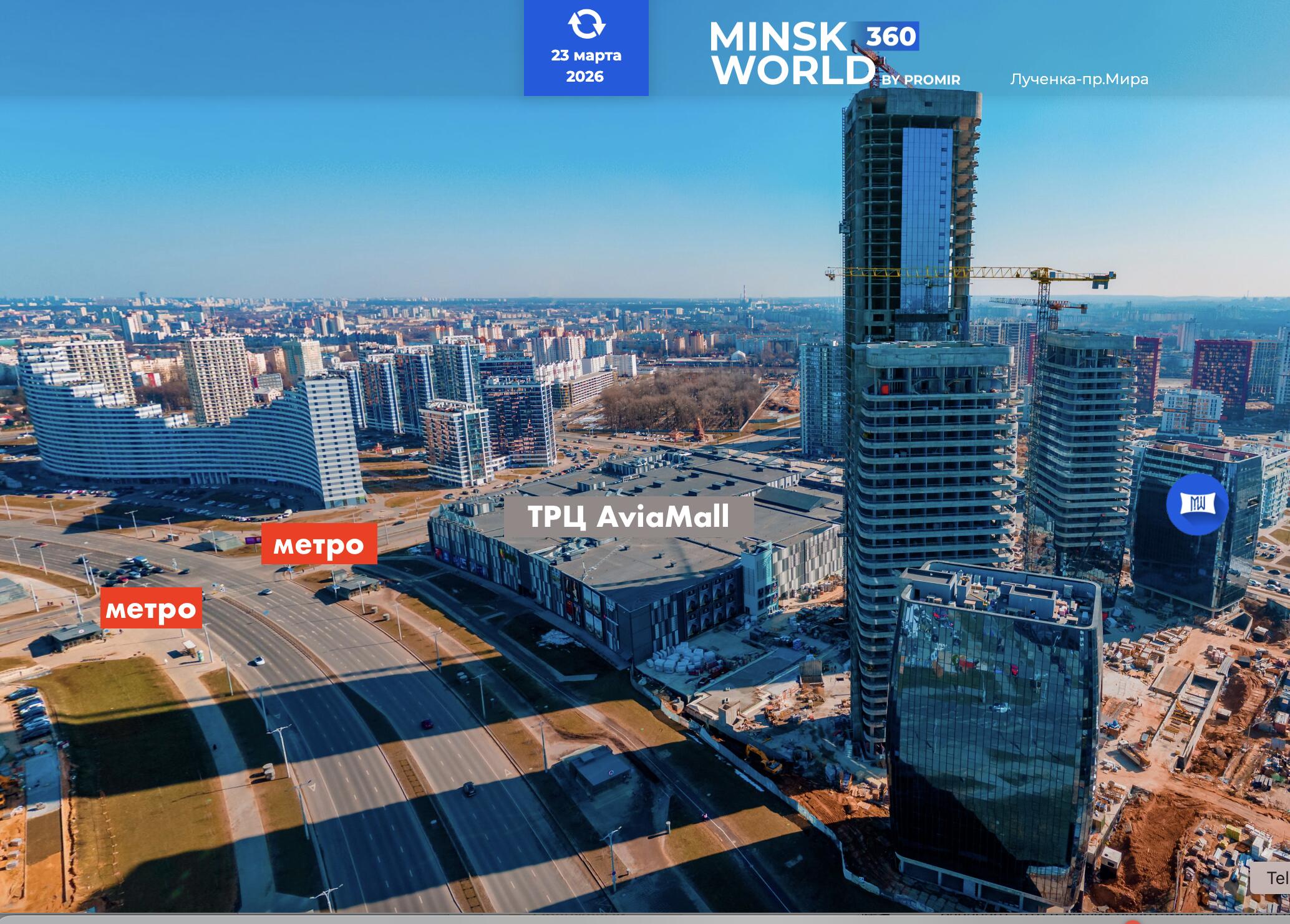 В шаговой доступности: остановки наземного общественного транспорта, до станции метро «Аэродромная» (уже работает). Рядом пр-т Мира – центральная магистраль комплекса «Minsk World», обеспечивает связь второго транспортного кольца с улицей Кижеватова. За считанные минуты можно добраться как до центра города, так и до МКАД.