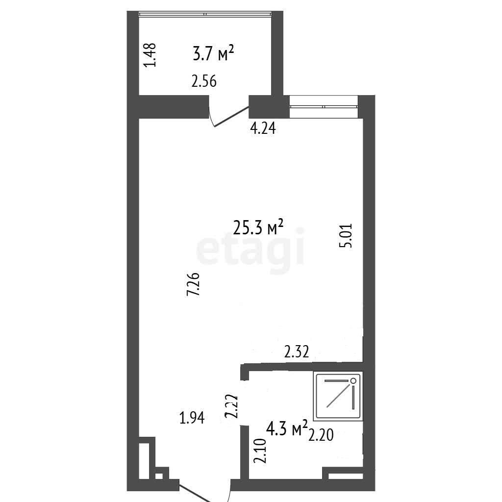 жилая площадь 25,3 кв.м.