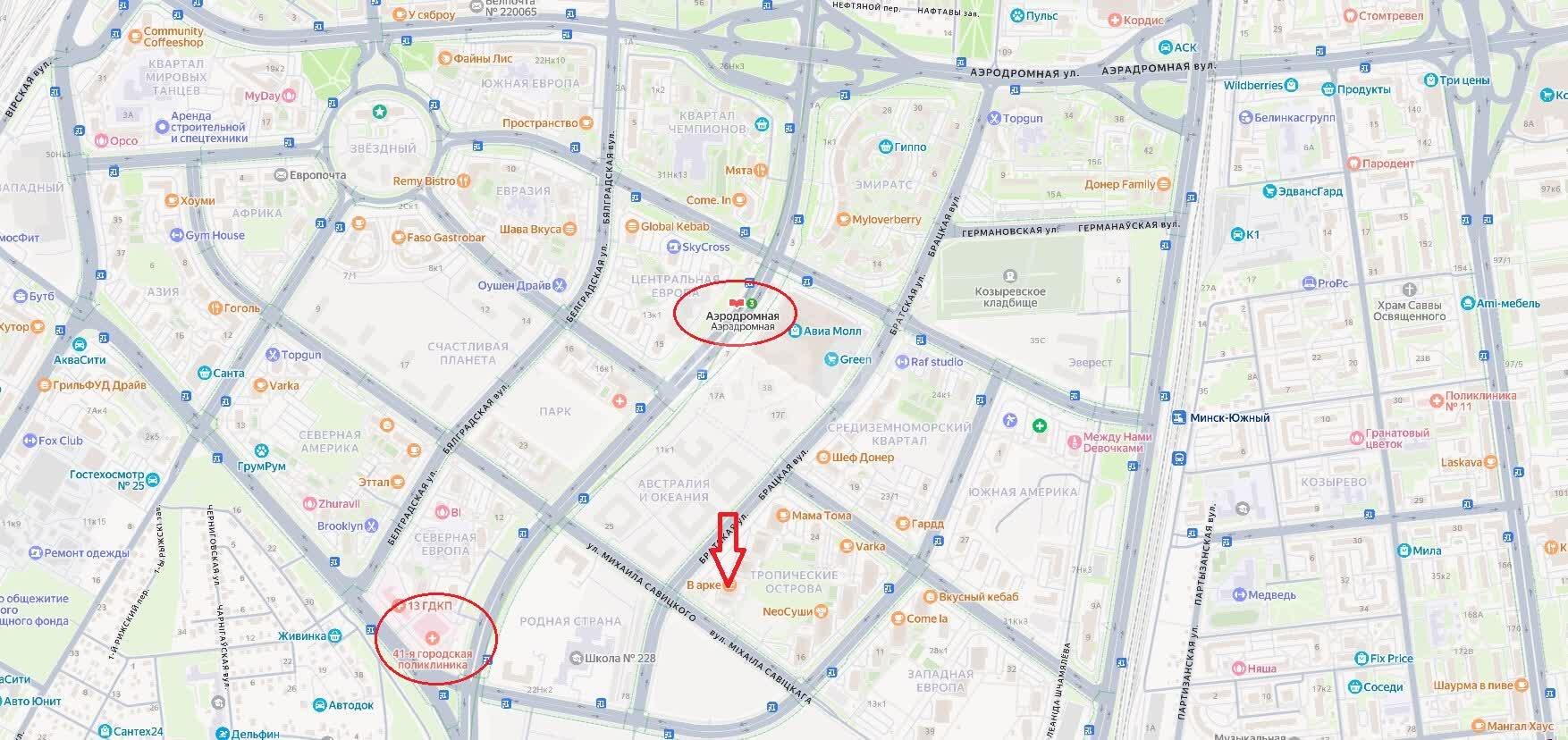 Хорошее транспортное сообщение, в шаговой доступности станция метро «Аэрадромная».