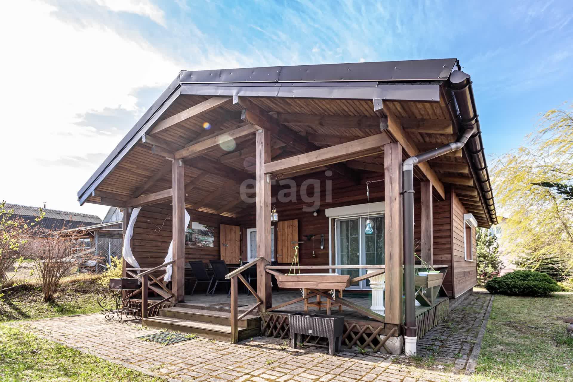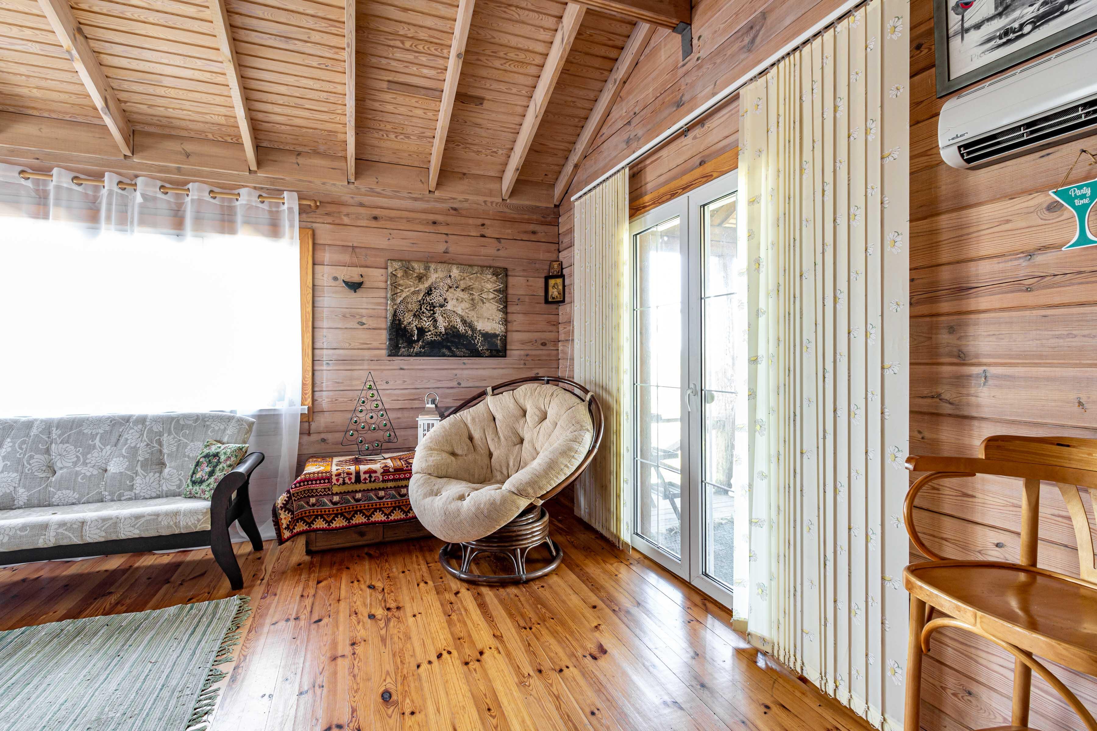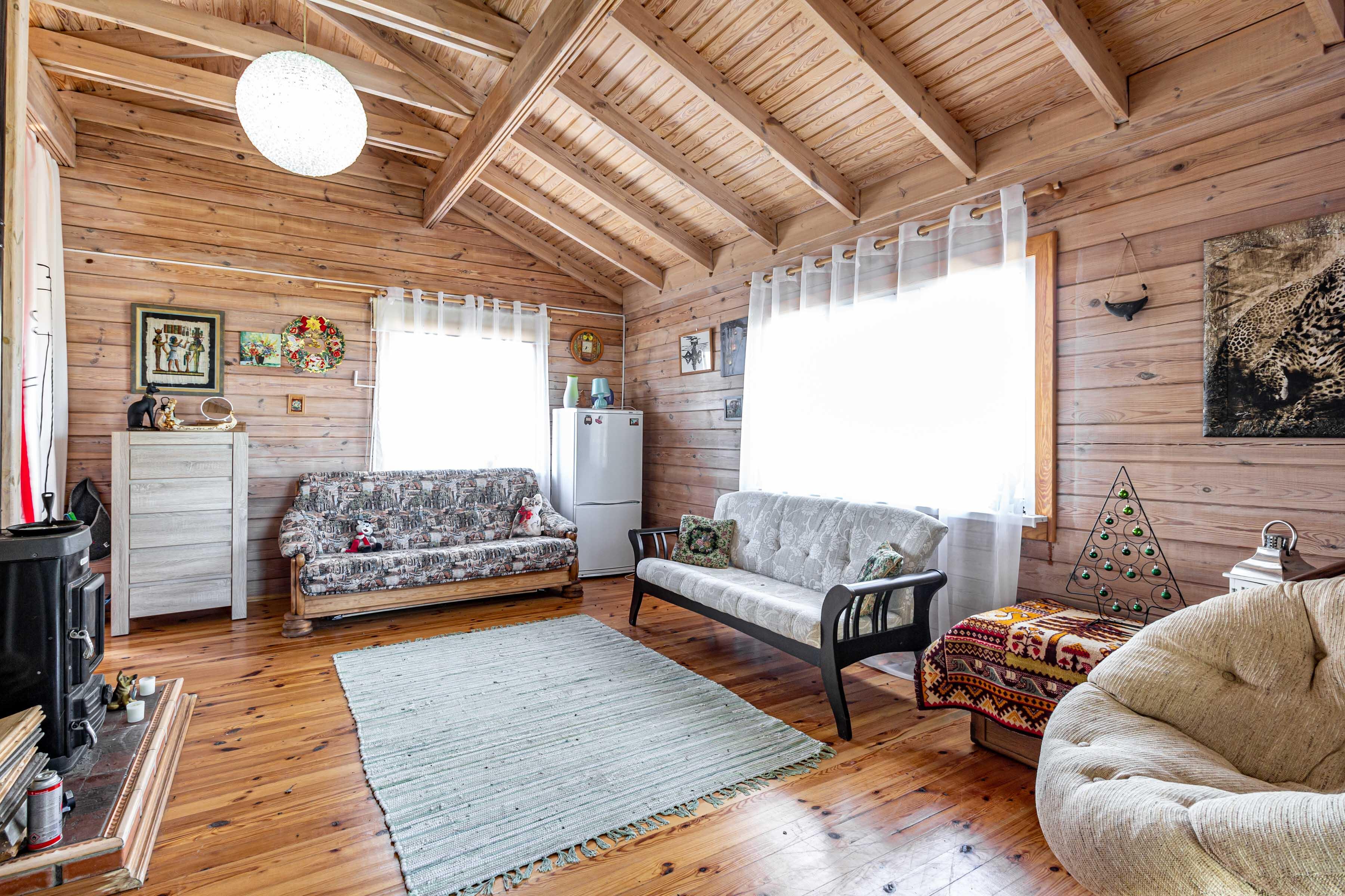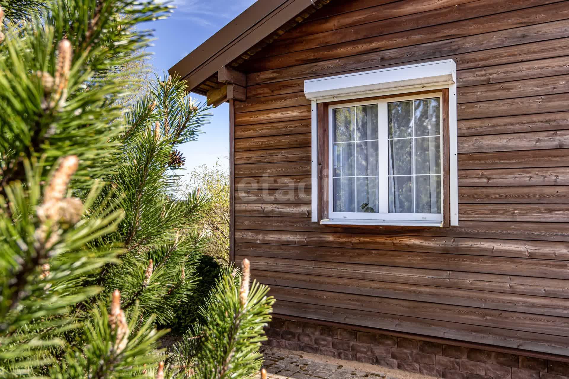 Дом построен из клееного бруса, снаружи обшит блок-хаусом из лиственницы.