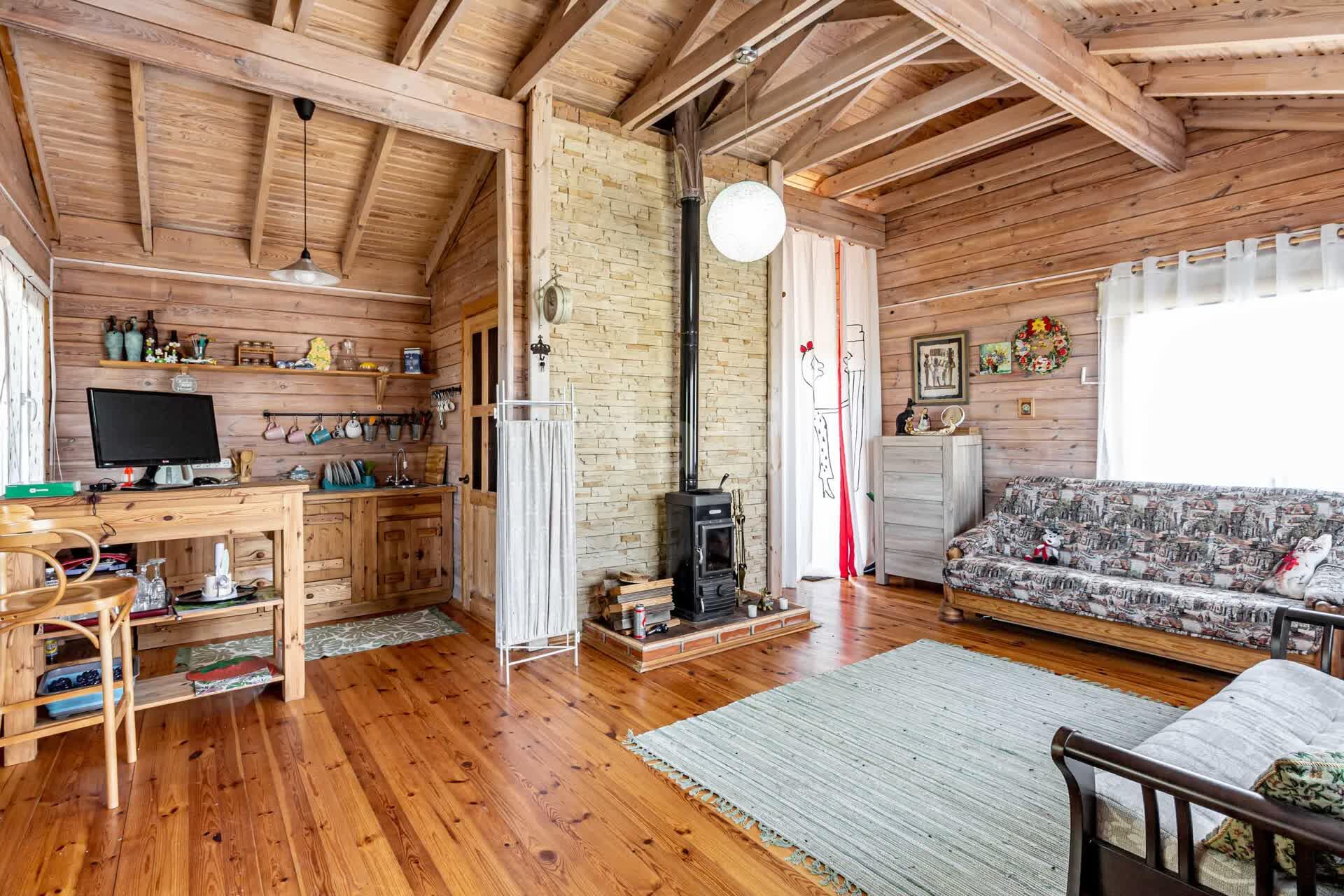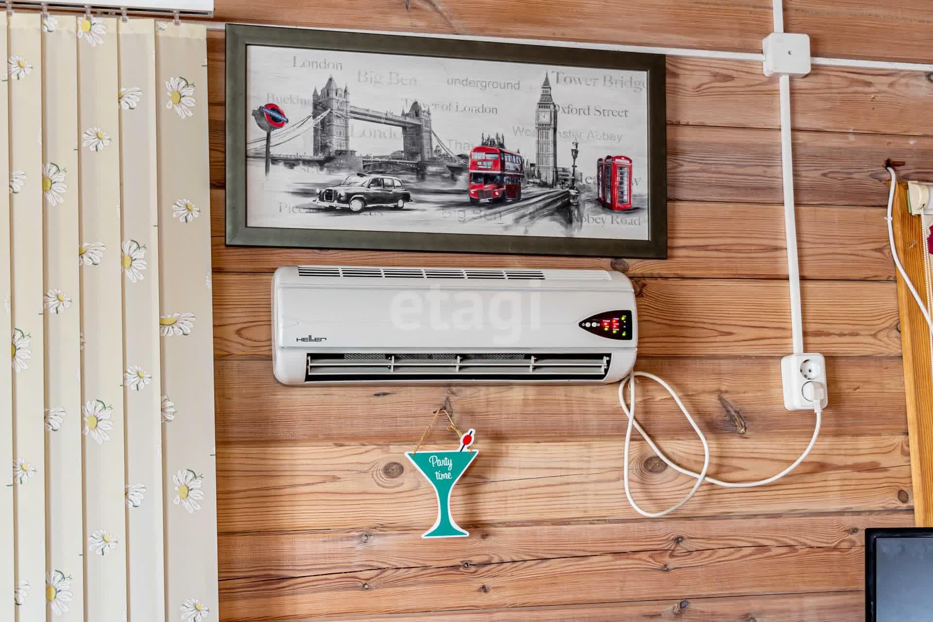 Дом отапливается с помощью печи– камина, либо с помощью кондиционера.