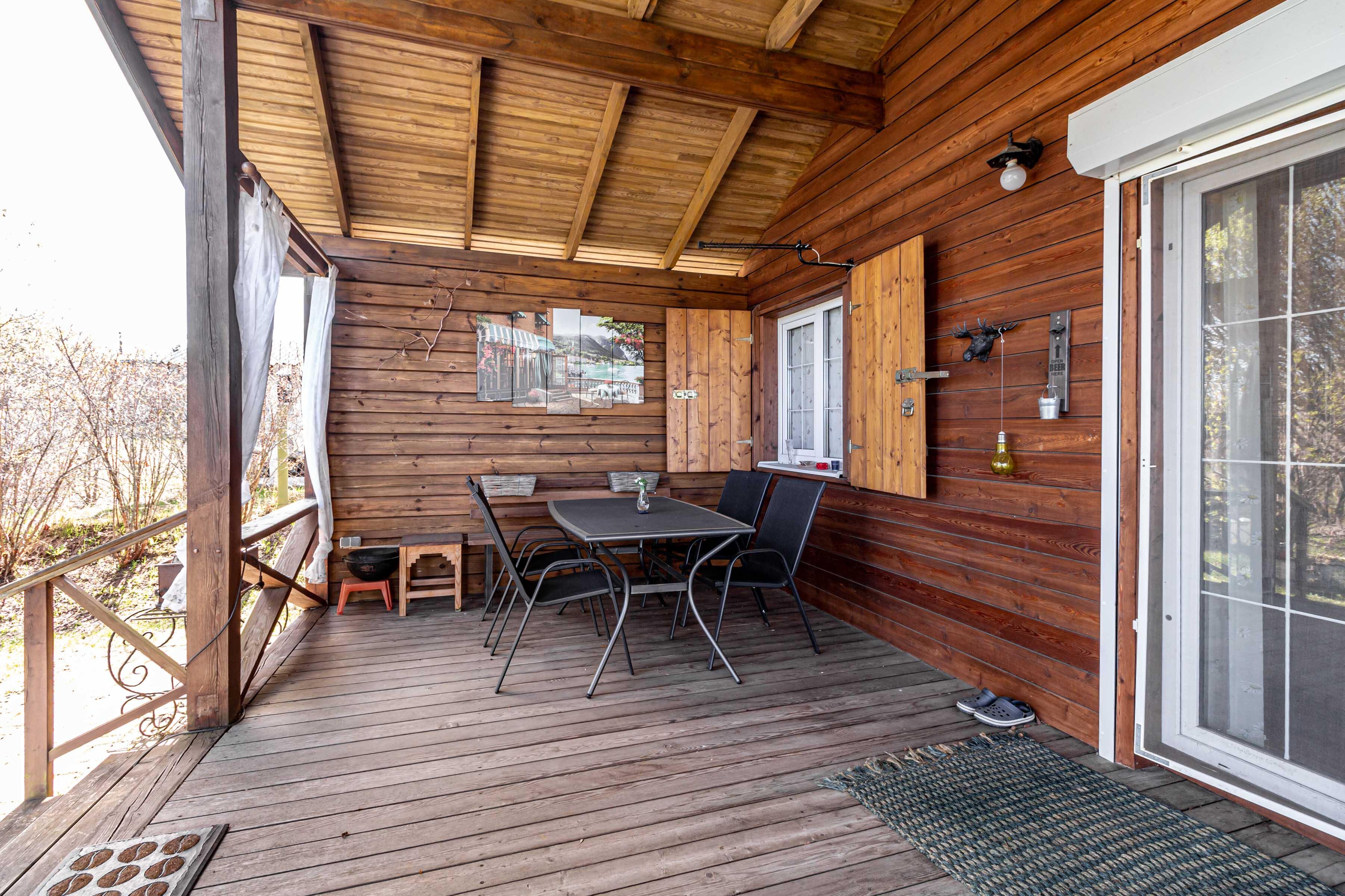 Просторная ( более 20м.кв), крытая терраса со всей необходимой мебелью.