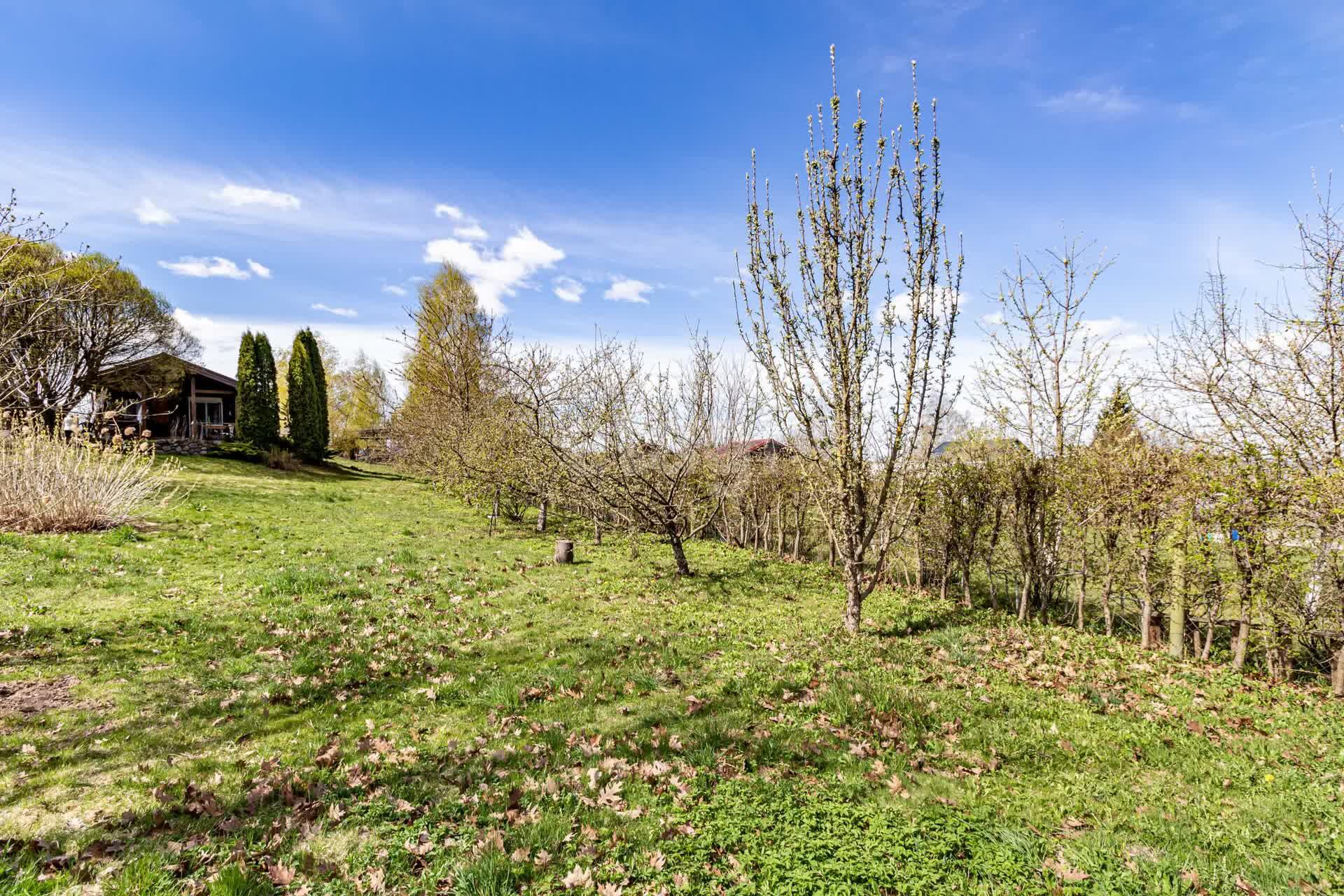 На участке множество плодовых деревьев, клумбы и цветники, хоз.блок ( который можно переделать в баню), летний душ, навес для машины.