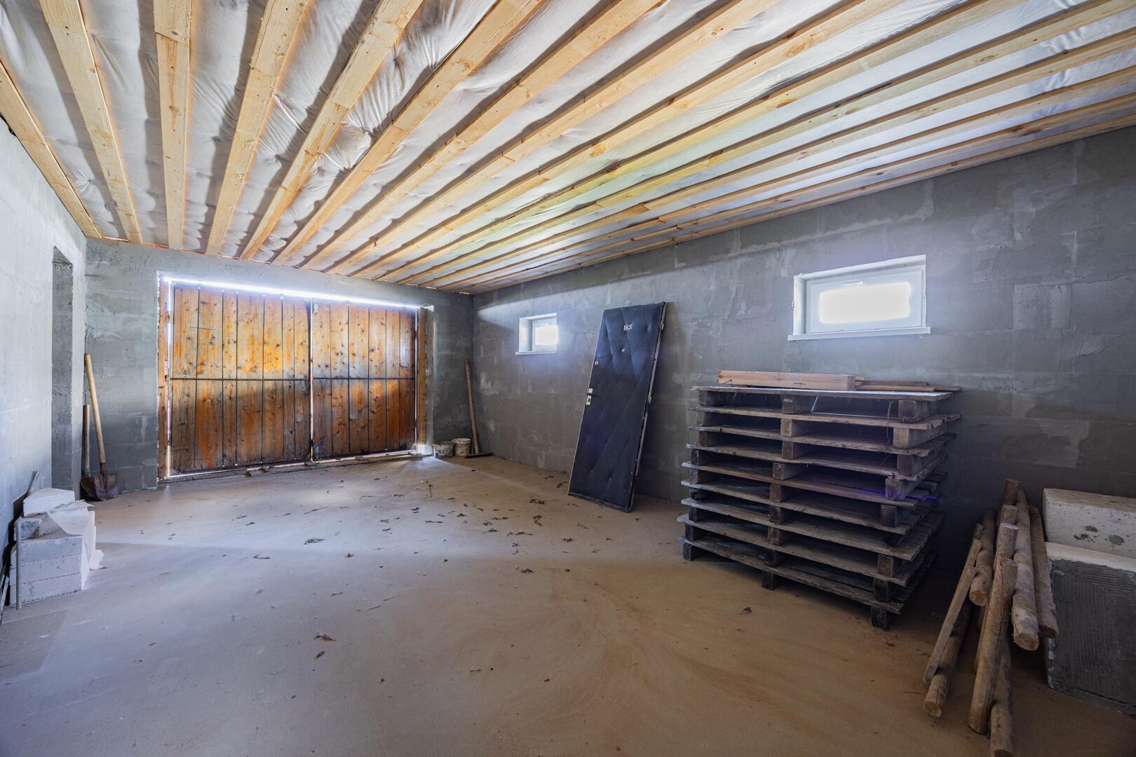 На первом этаже застройки находятся: кухня, столовая, гостиная, санузел, гараж, топочная.