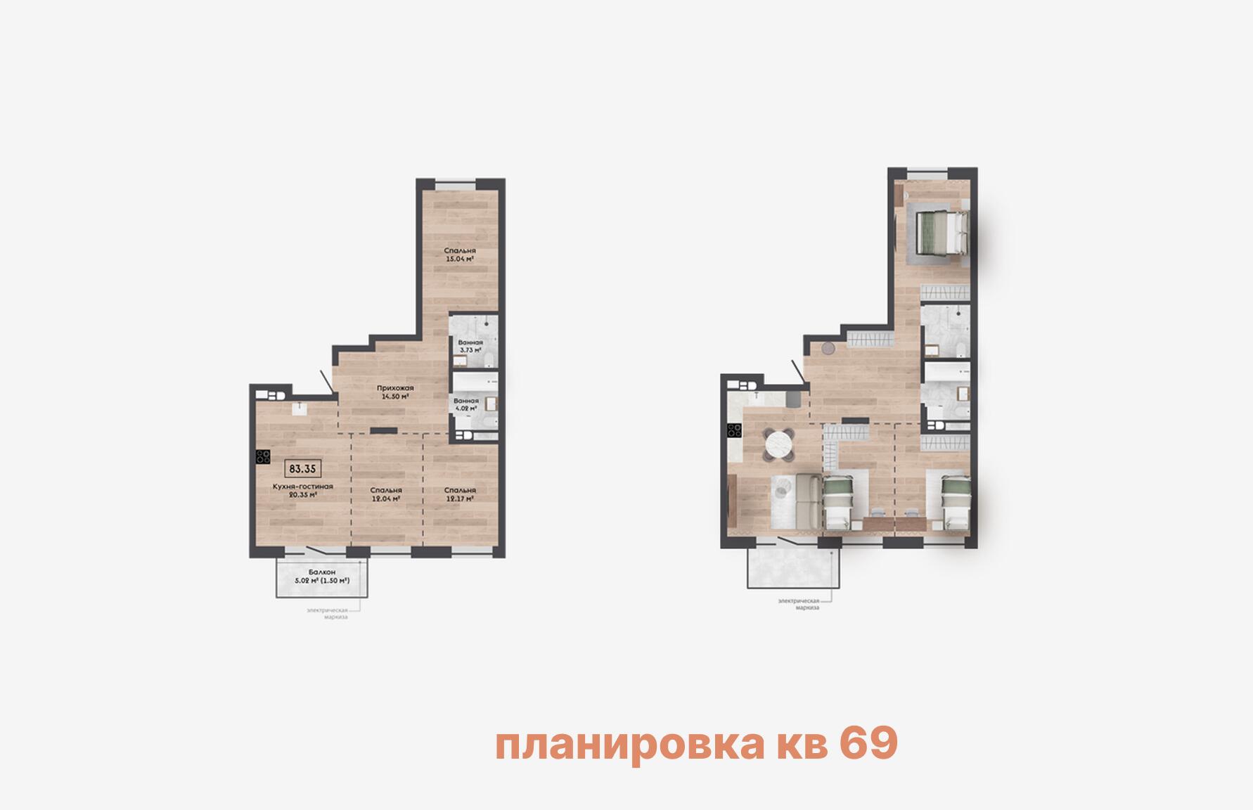Монолитный дом комфорт-класса 3 подъезда (6–5–6 этажей) Квартиры евроформата: от 2 до 5 комнат Площадь: от 37 до 110 м2 Высота потолков: 2,72 м (в мансардах — до 6,5 м) Открытые балконы и террасы Преимущества квартир: