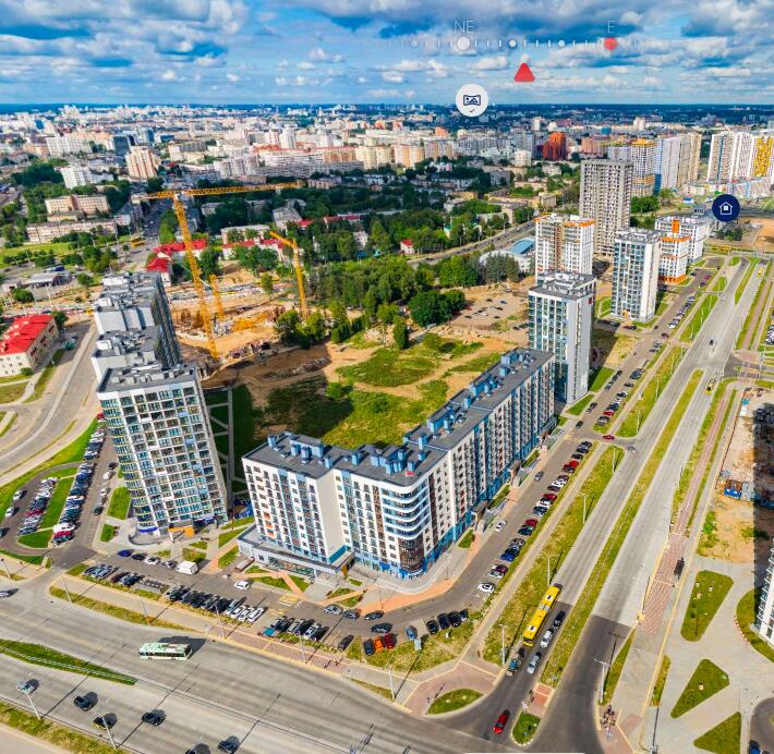 В шаговой доступности: остановки наземного общественного транспорта, до станции метро «Аэродромная» (уже работает). Рядом пр-т Мира – центральная магистраль комплекса «Minsk World», обеспечивает связь второго транспортного кольца с улицей Кижеватова. За считанные минуты можно добраться как до центра города, так и до МКАД.