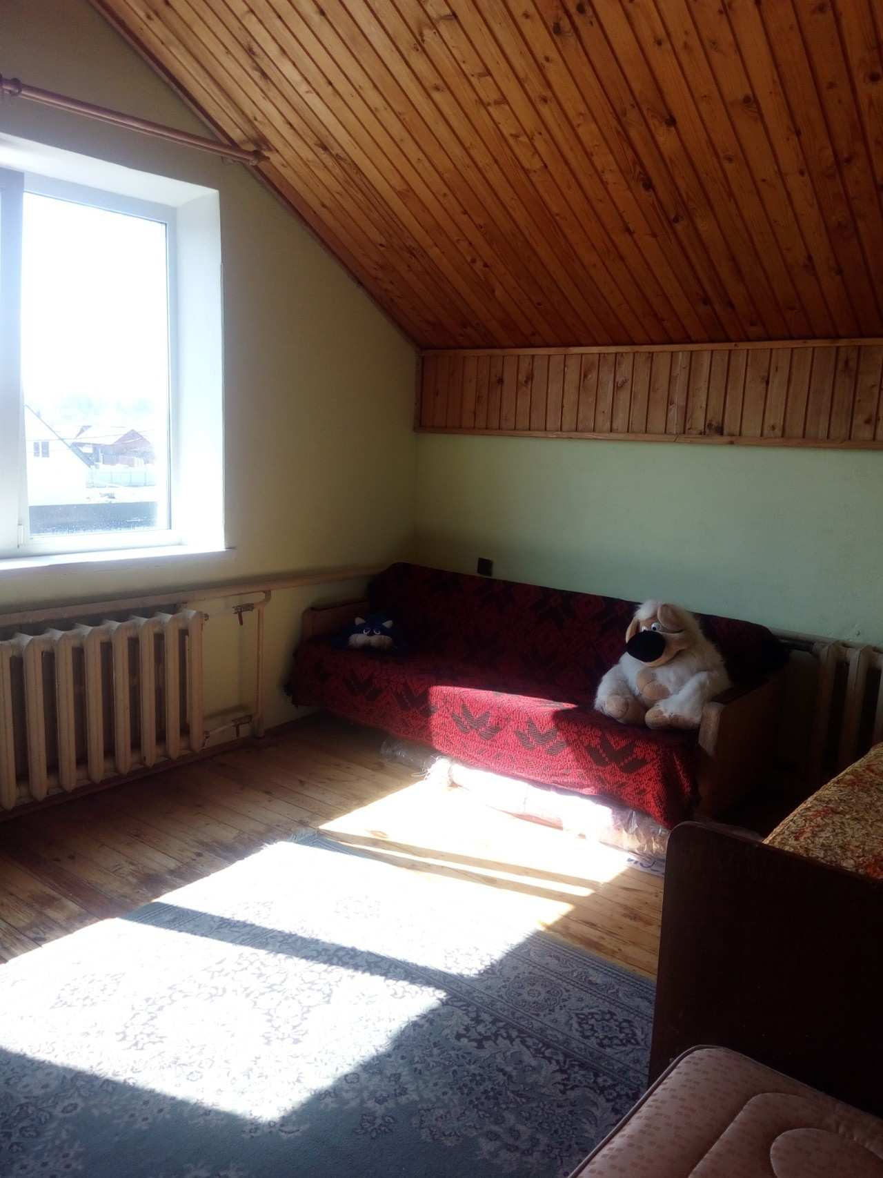 Продается теплый, уютный и просторный дом, общей площадью 222 кв.метра. Дом построен основательно по технологии 90х годов: газосиликатные блоки, воздушная прослойка, облицовочный кирпич светломедового цвета, - поэтому в нем тепло зимой и прохладно летом. Крыша оцинкованный кровельный профнастил, толщина 3мм, поставка из Германии. Окна – стеклопакеты. В доме есть все коммуникации: вода, канализация (выгребная яма), свет, газ, ТВ (спутниковая тарелка), телефон. Дом продается с самой необходимой мебелью. Полы в доме и лестница, идущая с 1 на 3 этаж, из натурального дерева, покрытые лаком. На каждом этаже ванна и туалет (совмещенные), облицованные кафелем.